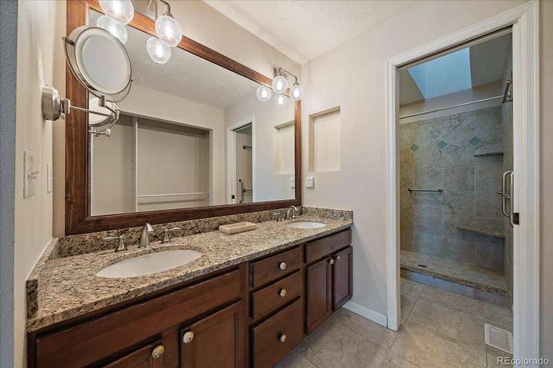 RARE LOW-MAINTENANCE RANCH TOWNHOME-STYLE HOME PROVIDES SIMPLE MAIN-LEVEL-LIVING PLUS BONUS FINISHED WALKOUT BASEMENT, WELL-LOCATED WITHIN QUIET SECLUDED COMMUNITY OFFERING A PEACEFUL & CONVENIENT LIFESTYLE!! PRIOR UPDATES INCLUDE ELEGANT FINISHES THROUGHOUT, CHERRY-STYLE CABINETRY & NEWER STAINLESS APPLIANCES, SLAB GRANITE COUNTERTOPS, HARDWOOD FLOORS, WELCOMING OPEN FLOORPLAN WITH SPACIOUS ROOMS HAS SOARING CEILINGS & LARGE WINDOWS, BRAND-NEW CARPET & PAINT THROUGHOUT, DOUBLE-SIDED GAS-LOG FIREPLACE, MULTIPLE OUTDOOR LIVING AREAS WITH PRIVACY SPACE FROM NEIGHBORS BEHIND. SPACIOUS LIVING ROOM & DINING ROOM HAVE 13' VAULTED CEILING. KITCHEN WITH EXTENSIVE GRANITE TOPS & STAINLESS APPLIANCES - INCLUDING 5-BURNER GAS RANGE - HAS PLENTIFUL CABINETS WITH ROLLOUT SHELVES PLUS PANTRY CABINET. LUXURY PRIMARY SUITE FEATURES 12' VAULTED CEILING, LARGE BAY WINDOW, ACCESS TO DECK, DUAL CUSTOMIZED CLOSET AREAS & OVERSIZE WALK-IN SHOWER WITH SKYLIGHT. VERSATILE SECONDARY BEDROOM/STUDY HAS LOTS OF LIGHT & ENSUITE FULL BATH. OPEN STAIRWAY LEADS TO ENDLESS POSSIBILITIES IN FINISHED WALK-OUT BASEMENT WITH 8' CEILINGS OFFERING SIZABLE FAMILY/MEDIA/THEATER ROOM WITH BUILT-IN SPEAKERS & PREWIRED FOR SURROUND SOUND & ALSO ACCOMMODATES EXERCISE/HOBBY/PLAYROOM SPACE WITH ACCESS TO PRIVATE COVERED PATIO, PLUS 3rd BEDROOM WITH WALK-IN CLOSET AND CONVENIENT 3/4 BATH. PLENTIFUL OUTDOOR LIVING WITH PRIVATE ENCLOSED 18x13 FRONT COURTYARD, 13x8 DECK ACCESSING LIVING ROOM & PRIMARY SUITE, 12x8 LOWER-LEVEL COVERED PATIO. NEWER FURNACE, A/C & HOT WATER HEATER. ICE-MELTING SYSTEM OVER FRONT DOOR, SECURITY SYSTEM, 2-CAR ATTACHED GARAGE LOCATED ON QUIET CUL-DE-SAC TYPE STREET. SUPER-CONVENIENT LOCATION JUST MINUTES FROM PARK MEADOWS MALL & ALL SURROUNDING RESTAURANTS/ENTERTAINMENT, FIRST-CLASS LONE TREE AMENITIES & EVENTS, PARKS & TRAILS, GOLF COURSE, NEARBY I-25 & C-470 FOR GREAT ACCESS AROUND TOWN - ALL WHICH PRESENTS A PERFECT PALLET TO MAKE THIS YOUR CARE-FREE-LIFESTYLE-EXPERIENCE CHOICE!!