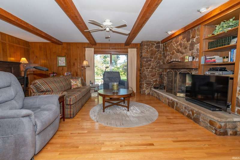Price Improvement! Welcome to this stunning & spacious 4-bedroom 2.5-bath mid-century home that has been lovingly and meticulously cared for by owner for past 40 yrs. Nestled in a beautiful neighborhood with lush landscaping on over a .5 acre lot this all brick exterior home features open eat-in kitchen with island, family room that showcases beautiful stone fireplace with opening on each side. Formal dining room, living room, main-floor laundry, and all 4 bedrooms on the main level. Master suite is an impressive 24x22 with large windows allowing plenty of natural sunlight. 3-walk out sliding doors from master, family room, and kitchen lead you to outdoor patio and serene backyard setting, perfect for family gatherings! New Lenox Furnace, A/C, Water in 2025. Great location close to shopping, dining, & bypass.