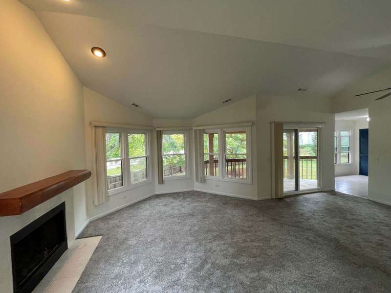 Large 2 bedroom plus Den, 2 baths. (Den could be used as a 3rd bedroom) This is a North facing, corner unit. The entire unit and garage interiors have been freshly painted. Windows and patio doors allow for lots of natural light. Kitchen features Quartz countertops, newer carpet, newer HVAC, newer laundry, smart thermostat, stainless steel appliances, back splash, new Quartz vanity tops in bathrooms. The spacious living room/dining room lead to a cozy eat-in kitchen. In Unity washer and dryer, all living space at one floor, bed rooms and 2 full baths complete your worry free living home. Large balcony overlooks professionally landscaped outdoor spaces, ideal for relaxing with a cup of coffee in the morning or refreshig beverage in the evenings. Take a walk around the beautiful neighborhood that also offers a clubhouse with party room and pool. Walkable to Meridian Middle School. Located in highly rated Stevenson High School and 102 school districts. Convenient to grocery, gym and retail stores, Walk to Prairie View Metra train station and access to tri-state tollway. There is nothing for you to do but move in and start living! Pets will be considered on a case by case basis.