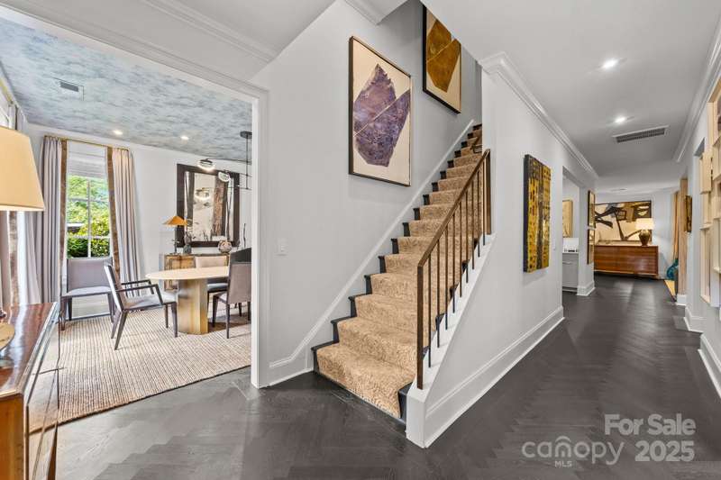 Stunning 3-story end-unit townhome in sought after Myers Park Chipping Campden community. This beautifully updated home offers a functional & flexible floor plan, tons of natural light and high-end finishes throughout. The main level features herringbone designed hardwoods, a sleek modern chefs kitchen equipped with Bertazzoni stainless steel ovens/range & custom cabinetry providing plenty of storageideal for both daily living and entertaining. The spacious family room and sitting area flows seamlessly to a private outdoor patio, perfect for morning coffee or alfresco dining. Upstairs, retreat to a spacious primary suite complete with a spa-inspired en-suite bathroom and walk-in closet. Two additional bedrooms with en-suite baths, laundry room & 3rd floor bonus/studio area offers flexibility to make this beautiful home your own. Don't miss the 2-car detached garage & one of its kind community English gardens - with a beautiful courtyard & stone fireplace!