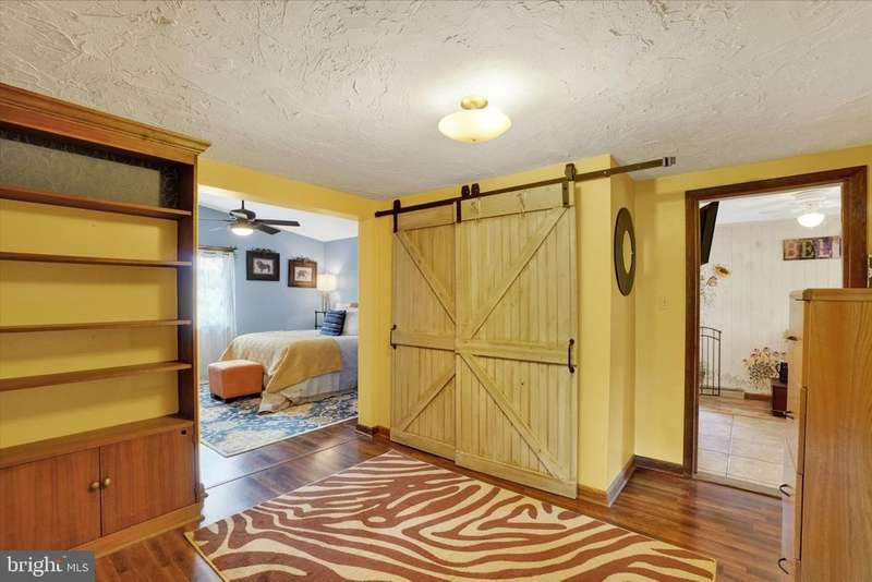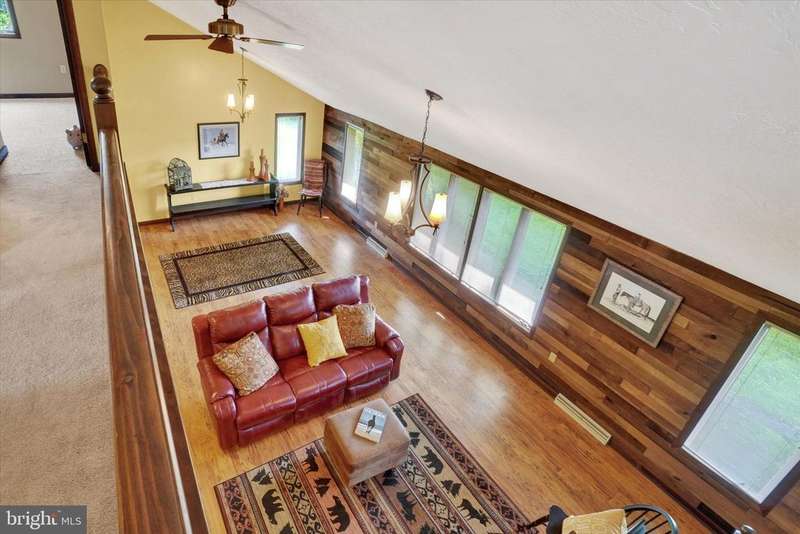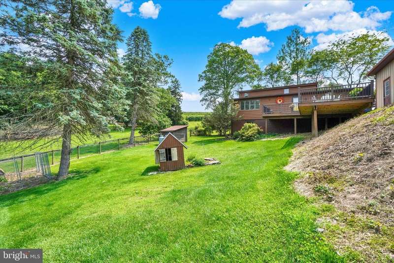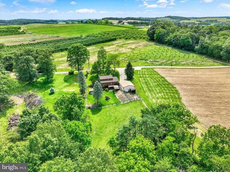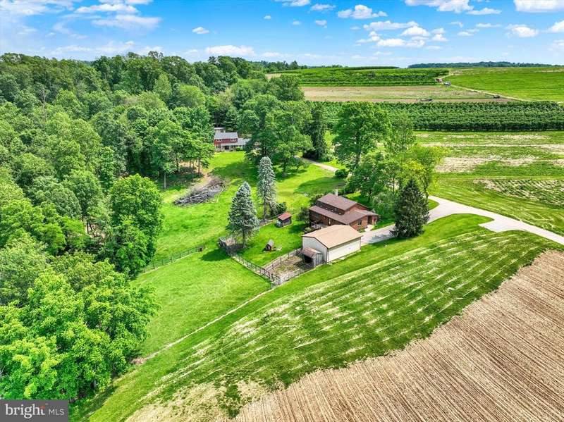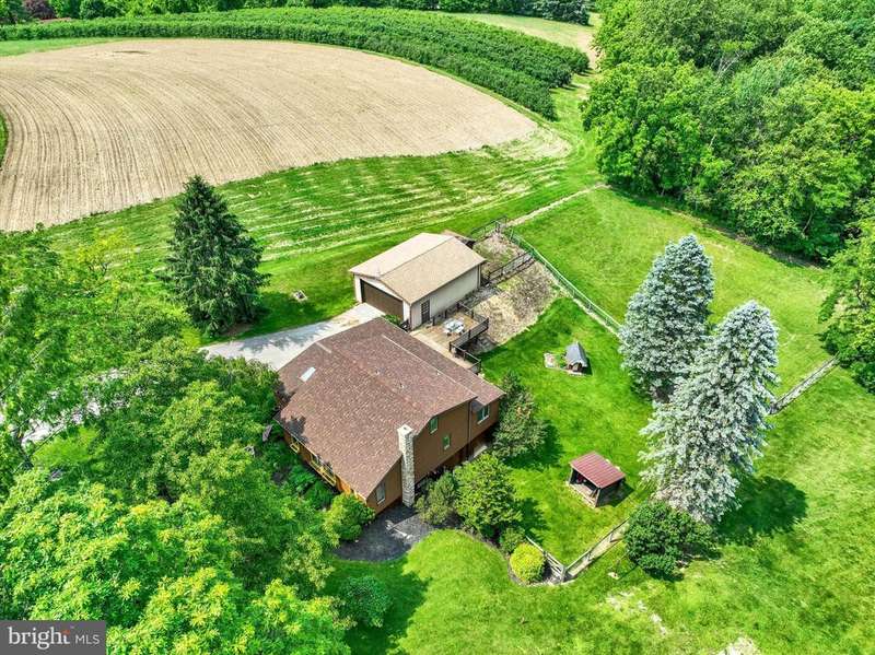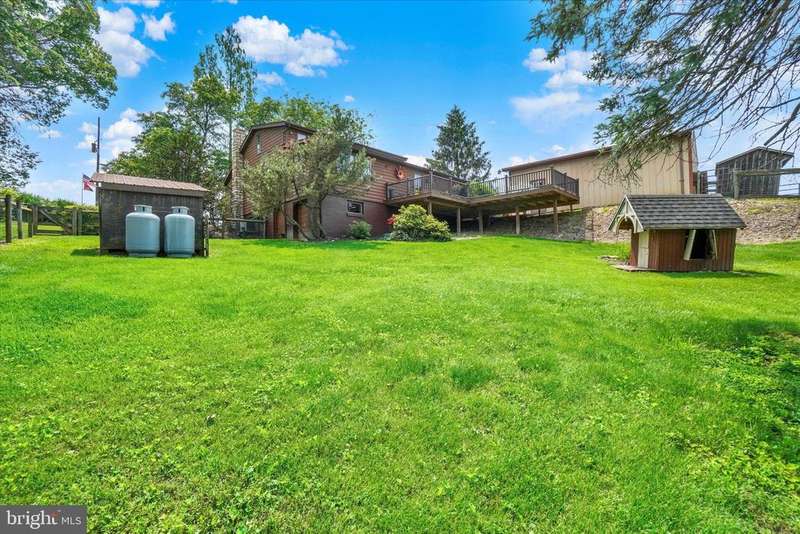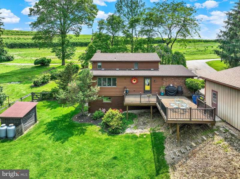 Come home from the hustle and bustle of your day and drive down the 1/4 mile long driveway among strawberry fields and fruit trees to a very private setting for the rest of the day. This fine home is log and brick sided with a huge 466 sq. ft. deck overlooking sheer privacy and a fenced rear yard for the pets. Inside you'll find first floor living with a large cathedral ceiling and lots of windows for light. There's a first floor primary bedroom with huge closets and a great primary bath. (It's nice). On the upper level is two bedrooms and another full bath with a railing overlooking the living room. Lower level has a large family room with a flue if you want to burn a wood or other kind of stove. Another built in garage down there big enough for motorcycles or other toys. Fenced in yard with pens for the pets. There is a large 4 car detached garage too with a loft for storage and shop workbench. Roof on the garage and house are newer, deck is updated. Heat is propane with heat pump. Septic always pumped as required. The home is well kept, the lawns and exterior are well groomed also. This is a wonderful place to call home for those who just want to get away and hang out. Survey stakes well mark all the sides of the two parcels that make up the .958 acre lot. No drive by looks, appointment required to view the property. Call for an appointment, this home is a must see. New septic tank recently installed and the sellers disclosure has been updated to reflect repairs.