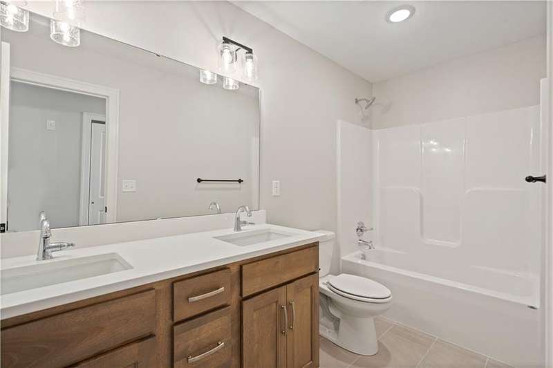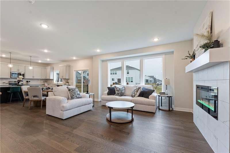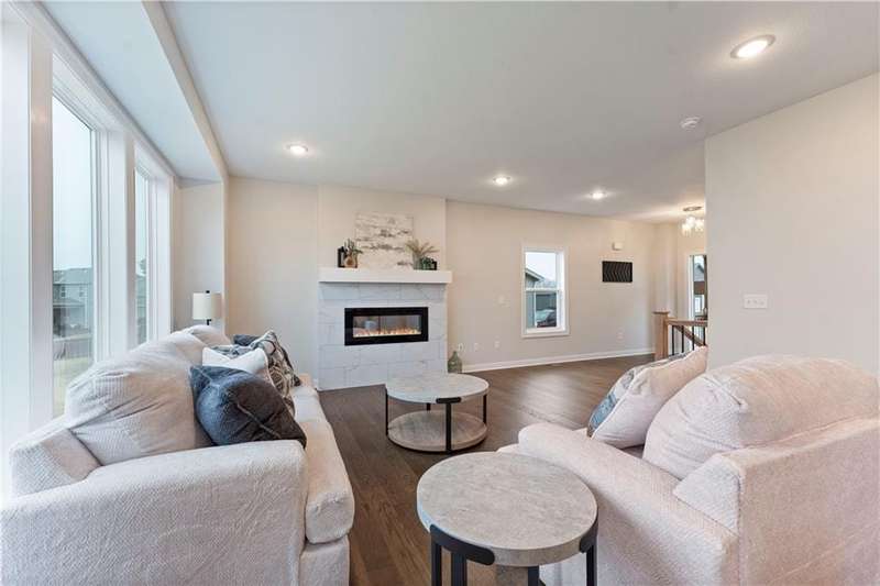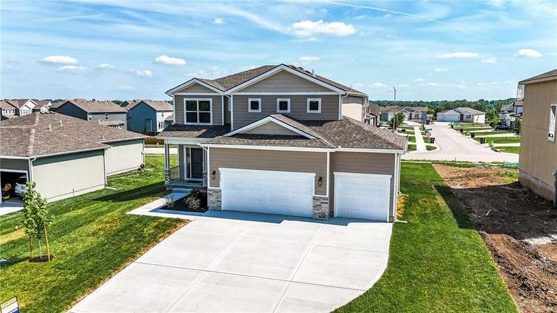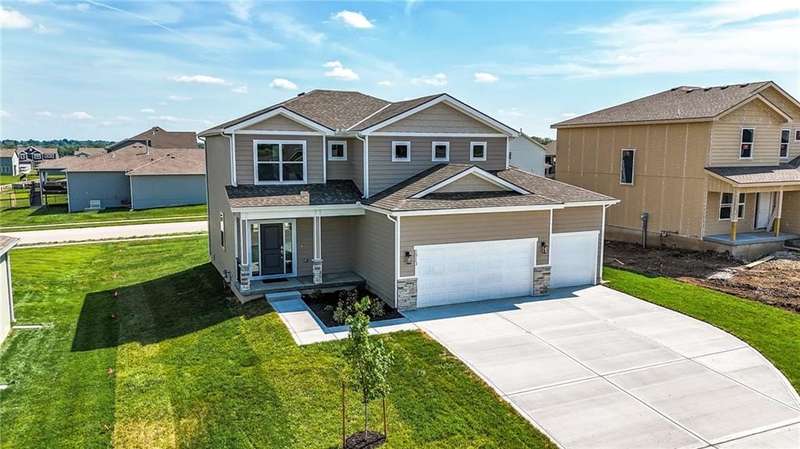 Move-In Ready! Ask about the Builder's $20K Incentive Promo! Discover tranquility in the heart of your home with our Serenity floorplana captivating 4-bedroom, 2.5-bath 2-story haven designed for modern living. Unwind in the expansive primary bedroom suite, complete with a generously sized primary closet seamlessly linked to the convenience of an adjacent laundry room. The grand Foyer welcomes you leading to the spacious Living Room, seamlessly connected to the Dining and Kitchen areas, where a Walk-in Pantry adds an extra touch of practical function. This home features our standard Dazzling & Devine' Curated Design Package plus we've added a cozy fireplace in the living room. This home features almond stained cabinetry, satin nickel hardware, black pearl granite kitchen countertops, white quartz bathroom countertops, tiled shower in primary bathroom, a water backup pump and (2) 220V garage outlets which are ideal for Tesla/EV chargers. Stoney Creek HOA fee only $640 annually includes trash, recycling, planned social activities, clubhouse, 3 pools, walking trails, playground, volleyball and sidewalks adjacent to Osage Trails Park.