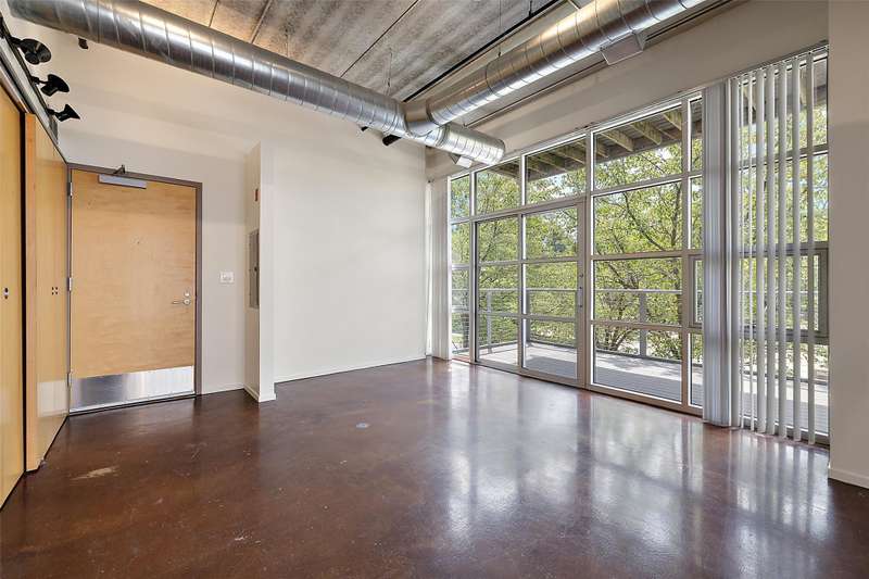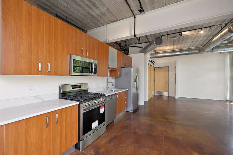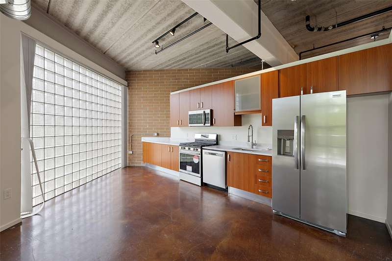 Experience elevated urban living in this stylish 1-bedroom, 1-bath corner loft just steps from the heart of Downtown Royal Oak and an award-winning neighborhood market. Located on the second floor, this unit features a private balcony, ideal for enjoying fresh air and city views with your morning coffee or evening drink. Inside, stained concrete floors and soaring 11-foot ceilings create an open, industrial feel that’s both modern and inviting. The kitchen offers sleek quartz countertops, European-style cabinetry, and stainless steel appliances, all connected to a bright living space flooded with natural light from oversized windows on two sides. Exposed brick and raw industrial accents add a layer of visual interest throughout. The bathroom is smartly appointed with a European glass shower, modern fixtures, and clean lines that complement the loft’s contemporary aesthetic. A dedicated parking space in the on-site lot is included. With I-75 and I-696 just minutes away, and easy access to everything Metro Detroit has to offer, this loft delivers the perfect blend of design, location, and convenience.