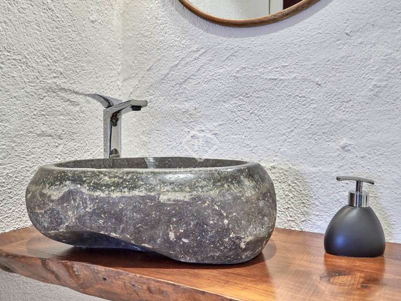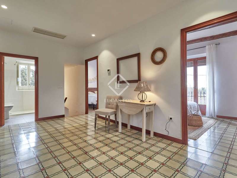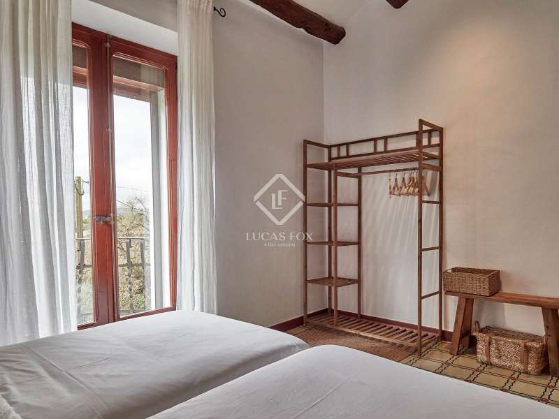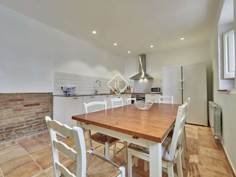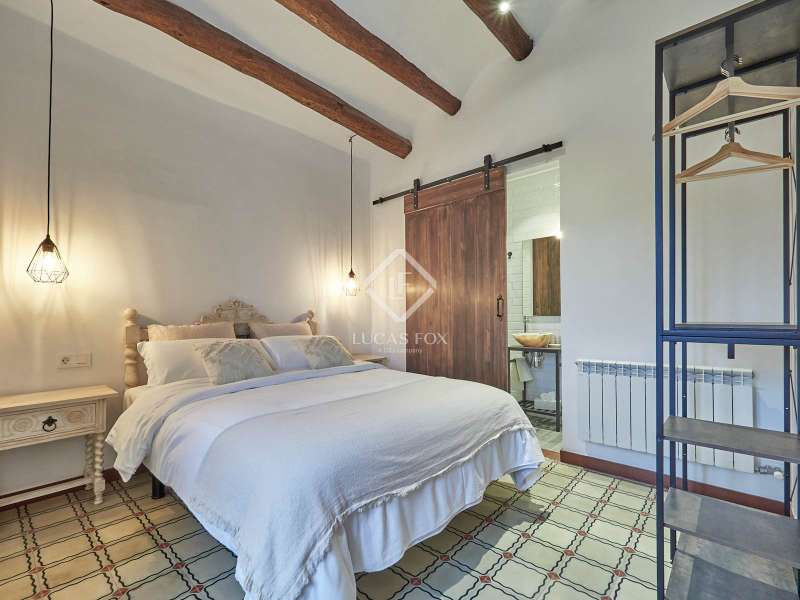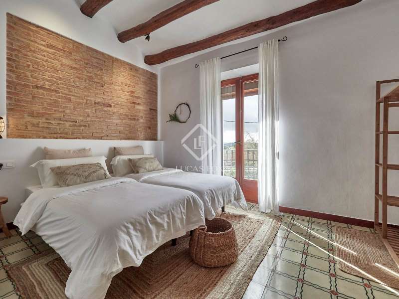 Original Catalan farmhouse dating back to 1900, fully restored while preserving the original elements and maintaining the soul that only a home full of history can convey. It is located in a privileged setting within the Penedès wine region, surrounded by nature and vineyards. The estate sits on a spacious fenced plot, featuring a well-maintained garden, grassy area, a charming wooden jacuzzi-style pool, a covered outdoor dining area, and parking space. The farmhouse is laid out over two comfortable floors. On the ground floor, there is a cosy living room with a large window offering views of the outdoors, with dry stone walls and handcrafted brickwork that preserve the essence of the original construction. A restored antique wine press, now serving as a unique decorative bookshelf, stands out. The kitchen-dining area perfectly blends rustic charm with functionality and includes a guest toilet. Upstairs are four bedrooms, including a master suite with an en-suite bathroom and a second full bathroom. All rooms receive natural light and retain original architectural features such as hydraulic tile floors, exposed stone walls, and restored woodwork. The house is heated by diesel radiators and has air conditioning on the upper floor. Additionally, there is an annex combining the former garage and machinery area under the roof, offering great potential to be converted into an independent loft-style studio, ideal as a workspace, extra accommodation, or a separate apartment. The main plot is urban, providing ample space for the possible construction of a second home or bungalows. Furthermore, the estate includes an adjacent rustic plot with multiple possibilities for gardening or cultivation, although building is not permitted there under current regulations. With an active tourist licence, this home offers versatility for both residential and holiday use. It is located a short drive from charming towns like Vilafranca del Penedès and Sant Sadurní d’Anoia, about 30 minutes from the coast with access to Sitges and Vilanova i la Geltrú, and has easy connections to Barcelona and its airport. A unique home, full of history and character, set in an incomparable natural environment, ideal for those seeking authenticity, tranquility, and quality of life.