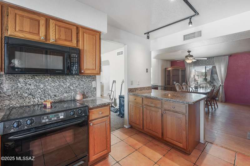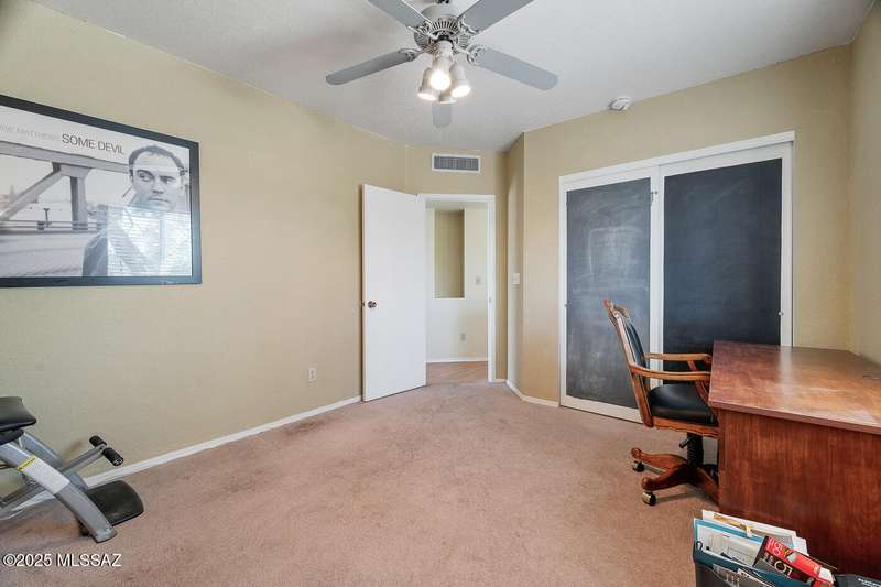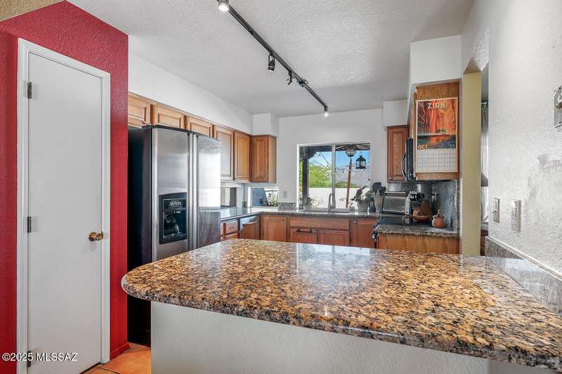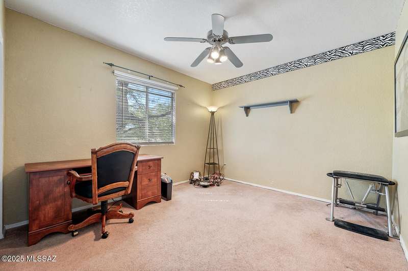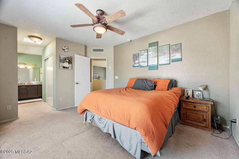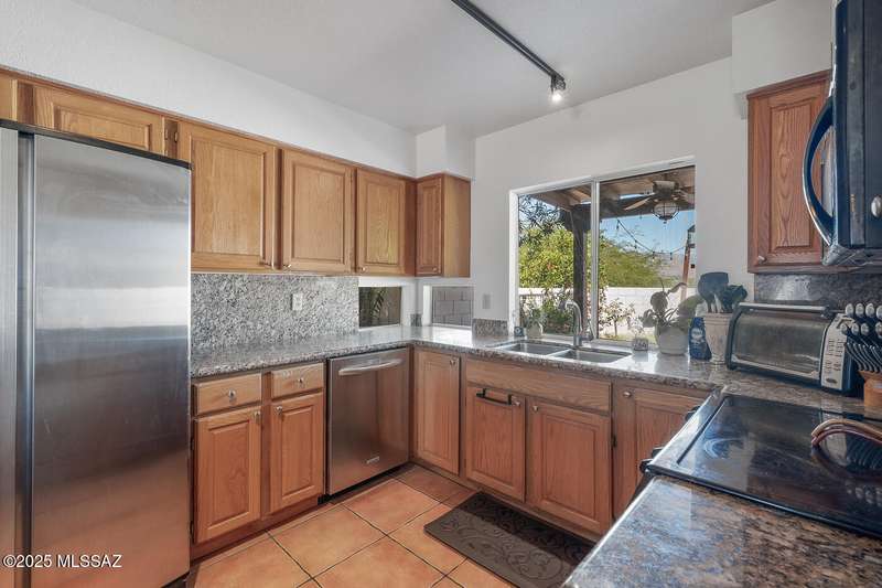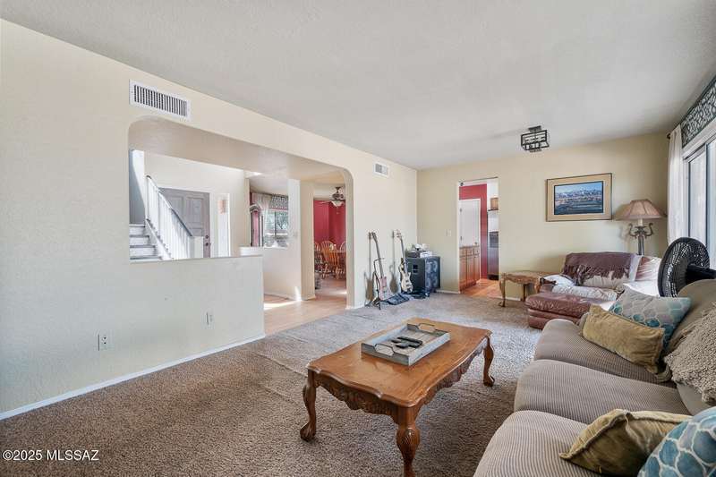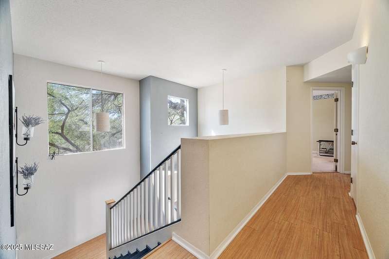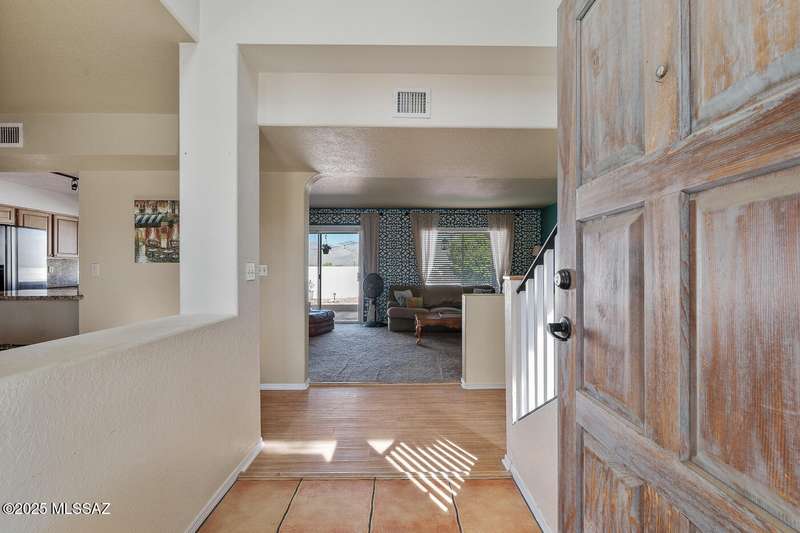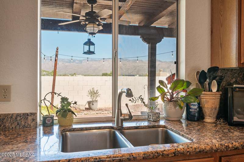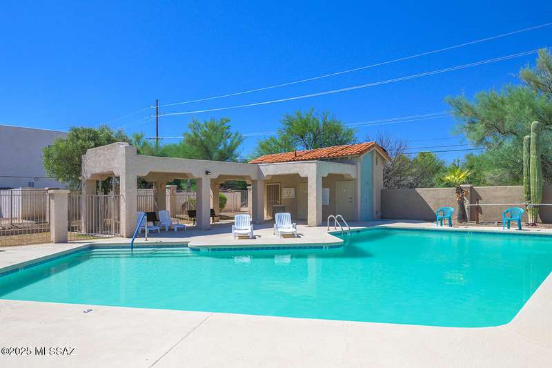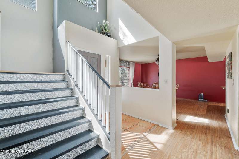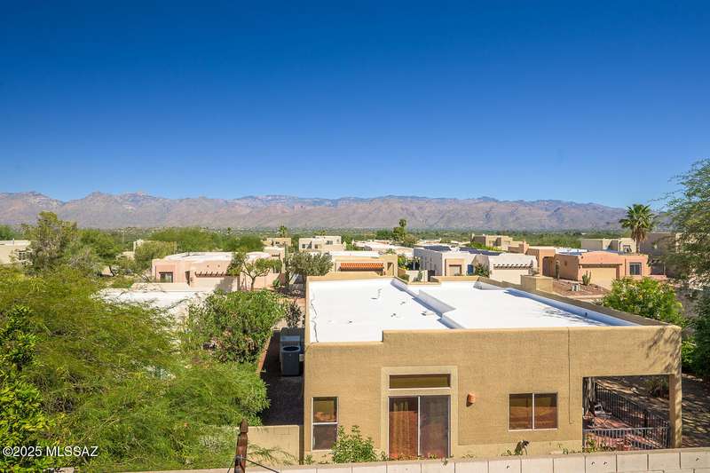 Wake up to sweeping Catalina Mountain views in this inviting two-story east-side home. With four bedrooms and three baths, there's room to grow--space for family, guests, or a home office. The kitchen opens to the backyard, where a shaded patio and spacious upper deck create perfect spots for morning coffee or sunset gatherings. Enjoy a quiet neighborhood with a community pool, nearby parks, and endless desert beauty. A warm, welcoming home ready for its next chapter.