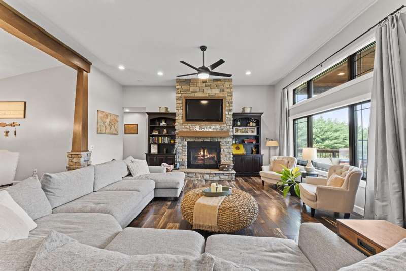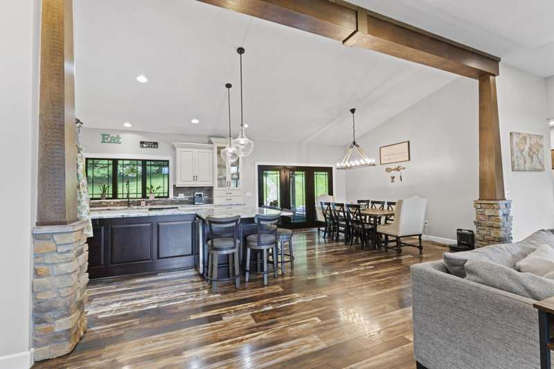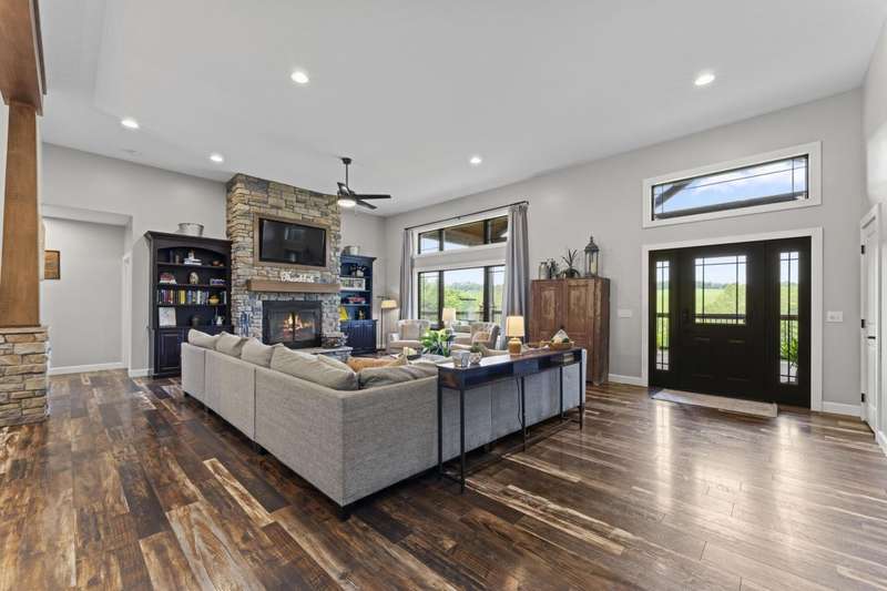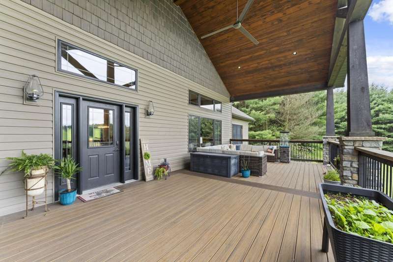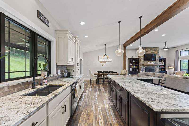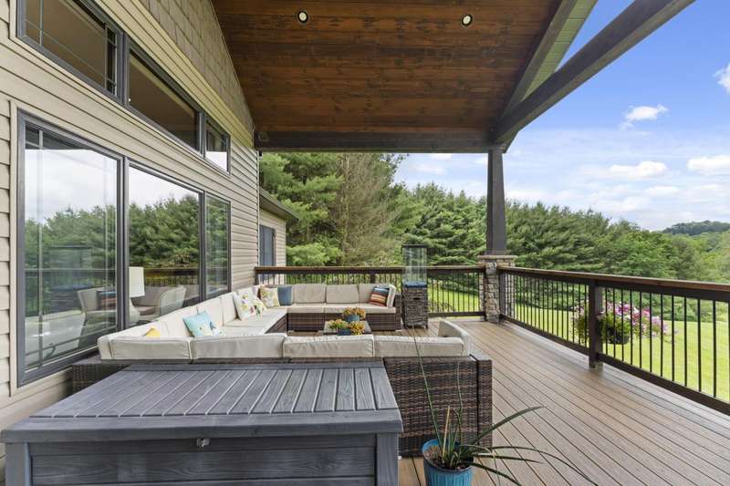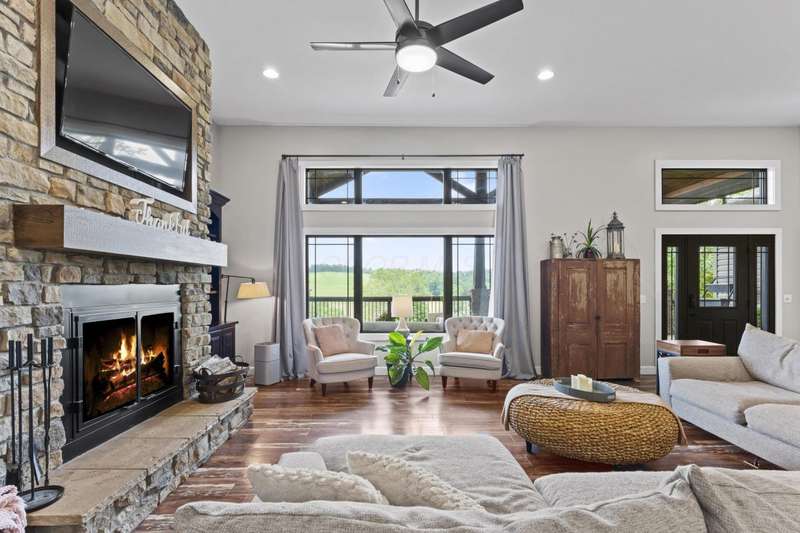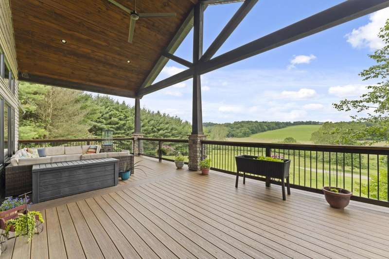 A Country Retreat You Could Only Dream Of!14+ Acres Nestled in the Most Picturesque Hillside SettingThis stunning custom-built high-end ranch offers sunset views so breathtaking, they rival anything you've seen on the big screen. Every inch of this 5-bedroom, 3.5-bath home is designed for comfort, function, and unforgettable moments.Inside, you'll find soaring ceilings with exposed beam, a chef's dream kitchen with a spectacular island and beautiful cabinetry, and a gorgeous stone fireplace flanked by built-in bookshelves that add warmth and charm. Spacious custom closets can be found throughout, while radiant heated floors warm the lower level. Even the family dog is treated to a built-in dog wash station in the laundry room! Step outside to your own private oasis???featuring a hot tub (negotiable) on the covered back porch, a massive front porch perfect for rocking chairs and slow mornings, and a walk-out lower patio ideal for entertaining under the stars.This rare property also includes:24x32 Party Barn with a fully equipped apartment (full bath, laundry hook-up, heating & air)32x50 Garage/Workshop with tall doors, concrete floors, pellet stove, electric, and water plumbed in11x22 Shed with concrete floor for even more storageVenture into the tall pines out back, where trails wind through your land???perfect for hiking, ATVs, or horseback riding (just needing a bit of trimming to reopen the adventure).The owner originally purchased the home with 6.5 acres, then later acquired the three additional buildings on 2.6 more acres, followed by later purchasing an extra 5 acres out back. Today, this incredible retreat spans approximately 14.11 acres across two parcels, offering space, seclusion, and so many possibilities.Approximate drive times: 30 minutes to Newark,14 minutes to Dresden,15 minutes to Coshocton, 25 minutes to Zanesville, 1 hour to the airport,6 minutes to Killing Tree Winery