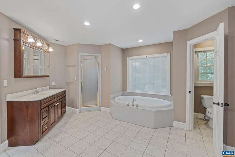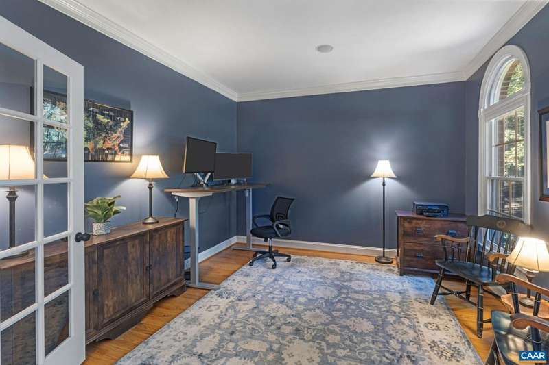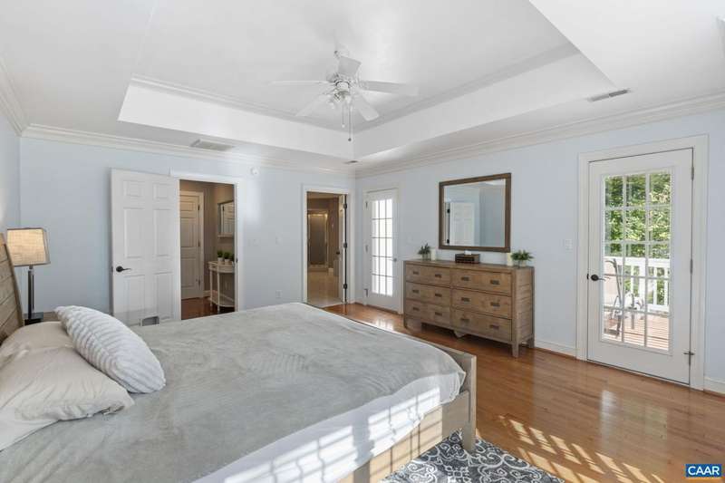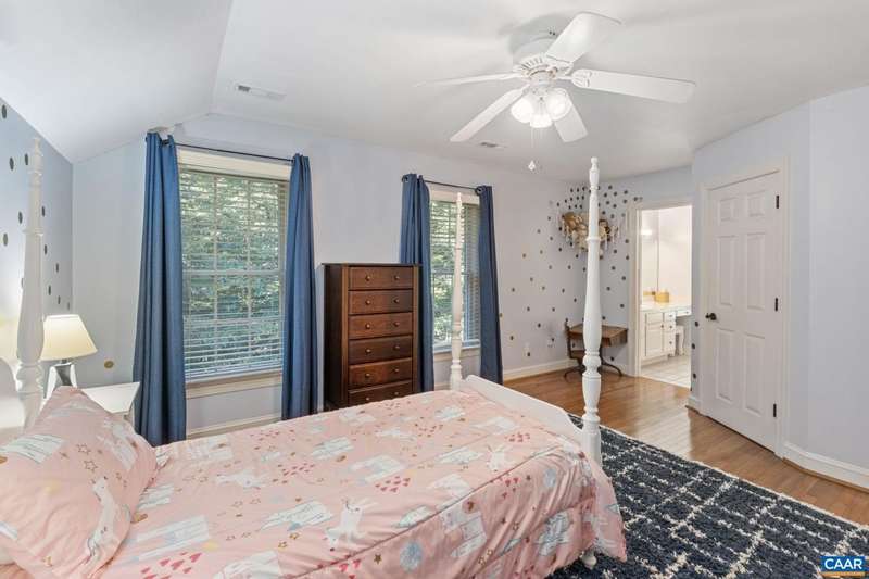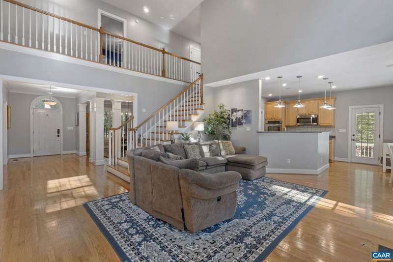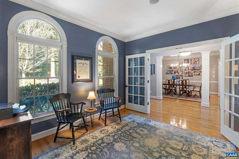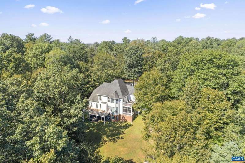 Beautiful brick Contemporary Colonial on 2.05 acres in sought-after Bentivar! This light-filled home offers multiple indoor & outdoor entertaining spaces, including a 2-story Great Room, large deck & screened porch overlooking the private yard. The library features custom built-ins, while the incredible owner?s suite boasts a tray ceiling, bay window sitting area with newly refinished private deck, spa-like bath, & an expansive walk-in dressing room. Hardwood floors flow throughout the main & upper level, with a Jack & Jill bath upstairs. The terrace level provides a family room, game room with wet bar, bedroom, full bath, exercise room & abundant unfinished storage. With a 2 car garage, fenced garden spot, & shed/Chicken Coop, this home has it all! No HOA. Recent updates include resurfaced driveway, new water heater, washer, dryer, refrigerator, & septic pumped, all within 3 years. Don't miss the additional storage in Bedroom 3's eaves. Only minutes away from everything Charlottesville has to offer, but feels like a private oasis!,Maple Cabinets,Solid Surface Counter,Fireplace in Great Room