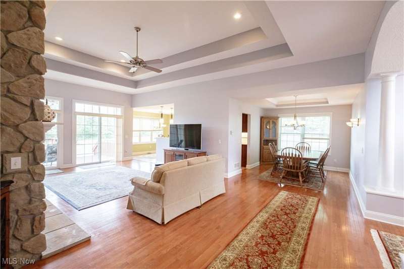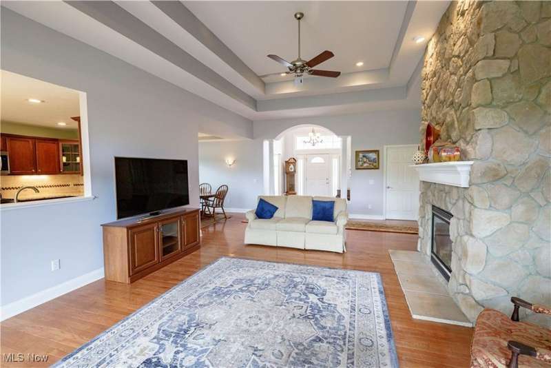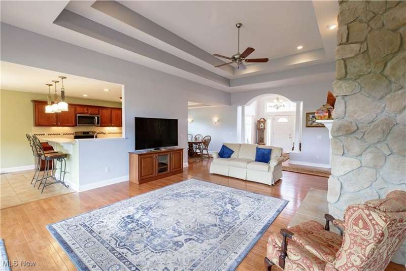 Enjoy this stunning 2 bedroom, 2 full bathroom villa home with 1,856 sq. ft. of living space on the main level and a full basement in the desirable Frazer Court neighborhood. As you enter the front door into the foyer you will notice the open floor plan featuring a great room having hardwood floors, a stone fireplace, trayed ceiling and double sliding glass doors leading to a maintenance free deck overlooking the private back yard that's perfect for entertaining family and friends. You will love the updated kitchen which has granite counter tops, stainless appliances, a breakfast bar and an eating area. The owners suite has his/hers walk in closets and a private en-suite bath with soaking tub, walk in shower and double vanities. There is a second ample sized bedroom, another full bathroom, a formal dining area with hardwood floors, an office or possible 3rd bedroom and a first floor laundry room. This villa has a huge full basement with potential to be finished and offers plenty of room for storage. Other features include an attached 2 car garage, cement driveway, high efficiency furnace, A/C, updated vinyl replacement windows and more. This is a very well kept property that is conveniently located in Plain Twp. and just minutes away from Gervasi Vineyard and Washington Square.