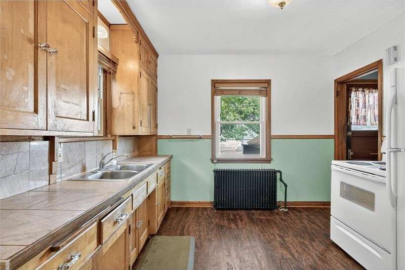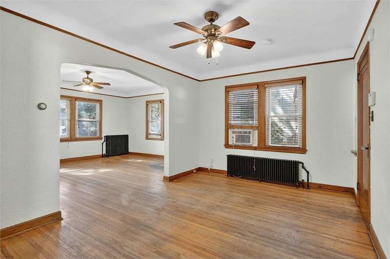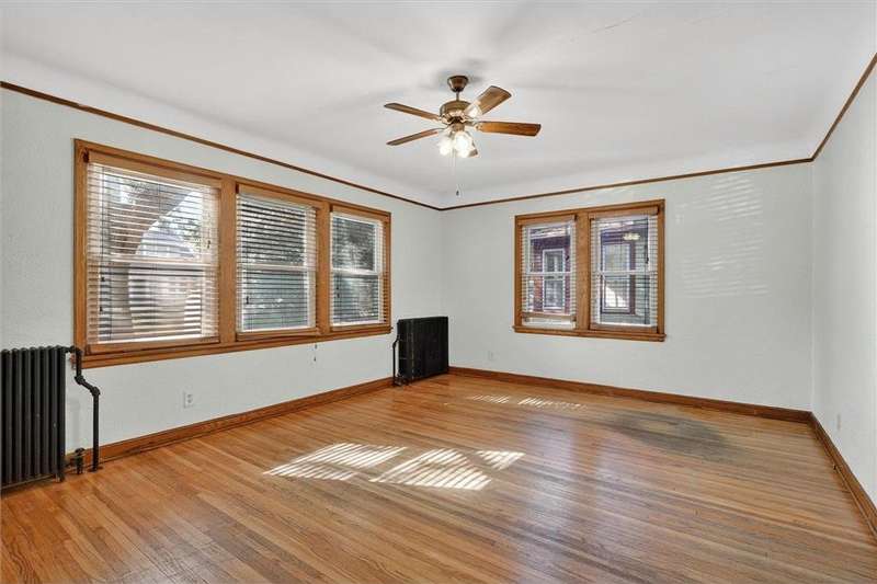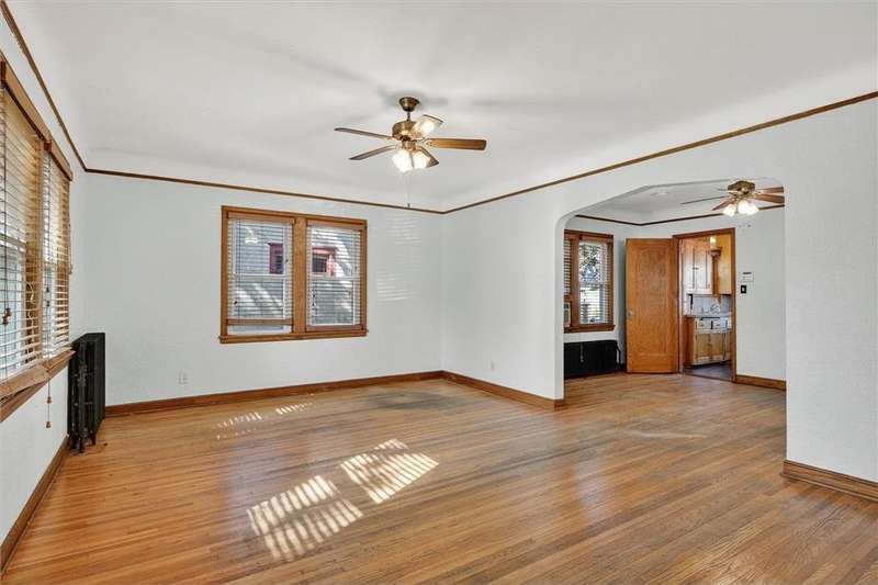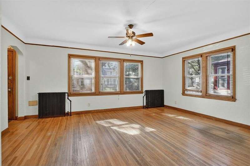 Spacious 4 bdrm 2 full bathrm 2 story with large deck and level backyard. Nice curb appeal stucco exterior and lots of vinyl double pane windows and stucco exterior. Main level boasts hardwood floors throughout, spacious Living and Dining Rooms w/large Kitchen and 2 Bdrms with full Bathroom. Upper level: hardwood floors, 2 more Bdrms with full Bathroom. Finished lower level with large Family Room, Office/Hobby rooms, Laundry romo area with plenty of storage space. Many original doors w/glass knobs and nice woodwork. One car garage with plenty of extra parking off the alley in back. Short walk to Hamline Green Line Station and Target and other shopping.