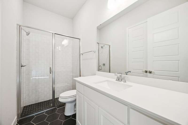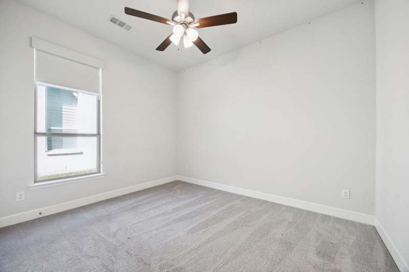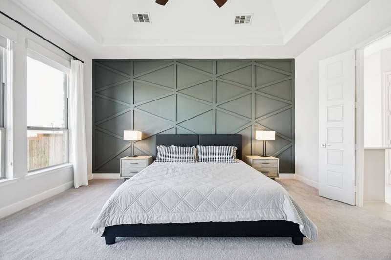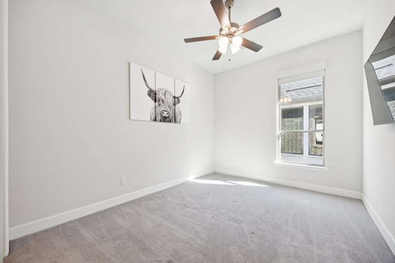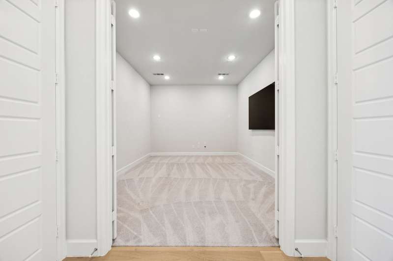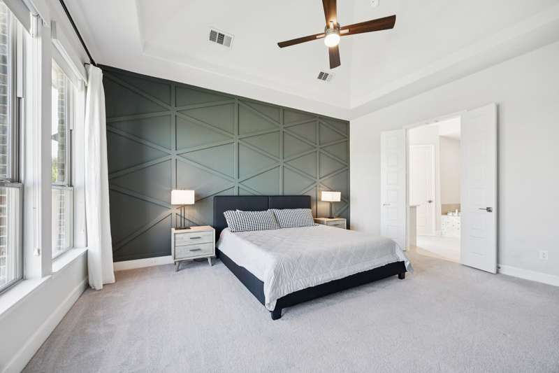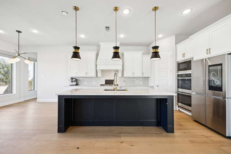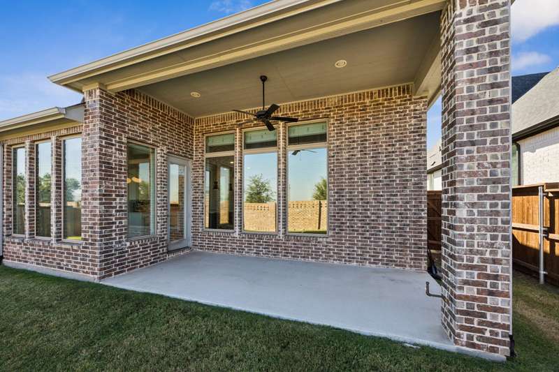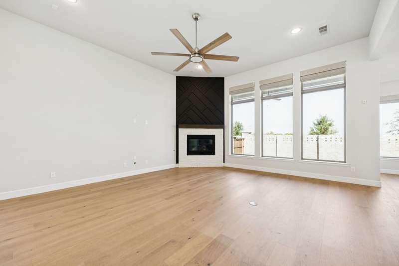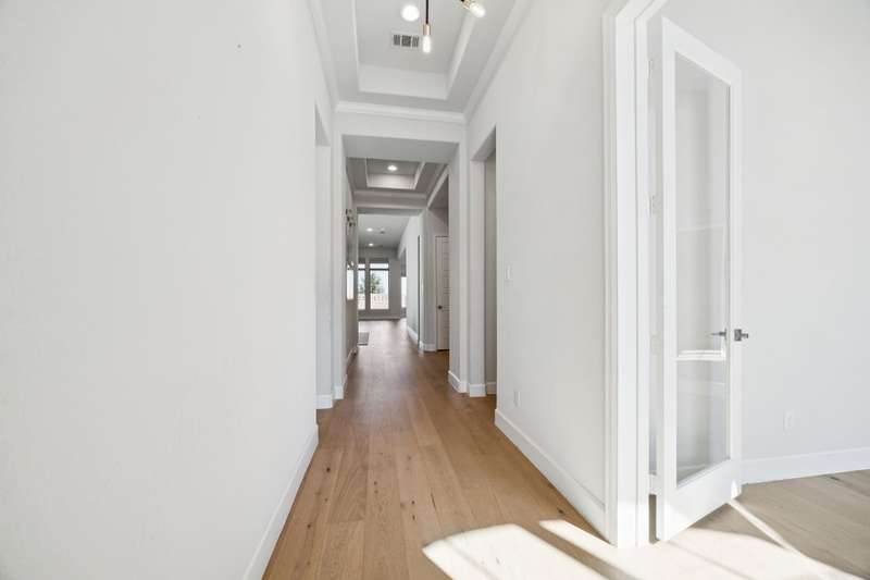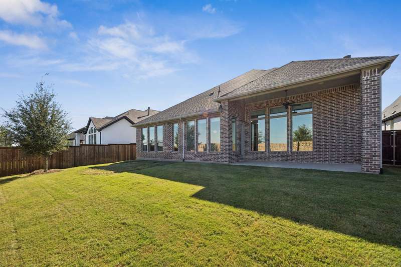 Stunning single story in Prosper ISD. This property is the perfect blend of modern design and comfort. Step inside to find hardwood flooring, neutral paint and designer lighting. Just off the entry are french doors leading to a private home office. 2 bedrooms with a shared bathroom are to the right. Carry on to find a spacious media room and third bedroom with adjoining bathroom. The heart of the home, the kitchen. Clean white cabinetry with black island, quartz countertop, gas cooktop, double ovens, ample storage. The kitchen is open to the breakfast nook, dining area and living room. The primary retreat features a stylish wood wall accent, dual vanities, garden tub, glass enclosed shower and 2 walk in closets. Enjoy seamless indoor-outdoor living with a covered patio and no rear neighbors. Great location. Near shopping, dining and walking distance to highly rated schools. Mustang Lakes features community parks, pools and amenities. Windows are fully tinted and window treatments will convey.