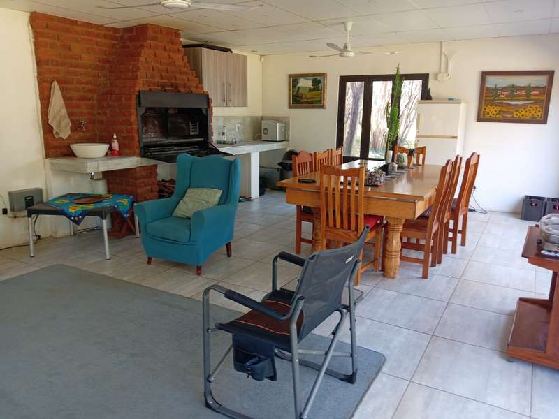 Discover an Extraordinary 9.3-Hectare Estate in Kameeldrift west, Pretoria – A Rare Opportunity Awaits! Step into a world of elegance and tranquillity with this expansive 9.3-hectare property, located between Hartbeespoort dam and Pretoria. This property is thoughtfully designed to blend modern comfort with rural charm. Boasting two exquisite homes, a spacious store, and lush gardens, this estate is ideal for family living, entertaining, or generating rental income. Whether you seek a serene retreat or a thriving agricultural venture, this property offers endless possibilities, including farming with cattle, sheep, or irrigation farming. Impeccable Security & Serene Surroundings Both homesteads and the shed are protected with alarm systems, beams, and electrical boundary fencing to ensure peace of mind. Enveloped by lush greenery, manicured lawns, and mature trees, the property exudes a sense of calm and seclusion. House 1 – A Spacious and Elegant Home Three large bedrooms, each with its own private bathroom. Luxurious master suite for ultimate comfort. Dedicated study for work or leisure. A well-appointed kitchen for delightful culinary experiences. Outdoor entertainment area featuring a modern Lapa, perfect for gatherings or conferences. A stunning swimming pool offering scenic views of the picturesque garden. House 2 – Stylish & Income-Generating Three modern bedrooms, each with en-suite bathrooms. Private entrance ensuring complete seclusion. Generates R10,000 rental income per month (excluding electricity but including water). Additional Facilities 9m x 18m storeroom with an extra garage, built with a solid structure for ample storage. Staff accommodation with two private bedrooms and bathrooms for added convenience. Expansive Grazing & Agricultural Potential 9.3 hectares of grazing veld – perfect for cattle or sheep farming. Large dam, enhancing agricultural and livestock opportunities. Two boreholes, one fully equipped for water supply. 8 hectares of arable land, awaiting cultivation. Geological and radar surveys have identified multiple borehole drilling points for further expansion. The Ultimate Lifestyle Investment This exceptional estate is more than just a home – it’s an opportunity to embrace sustainable living while enjoying security, comfort, and income potential. Whether you're looking to invest, farm, or enjoy countryside living, this property is a rare gem waiting to be discovered. Don't miss out on owning this piece of paradise! Contact us today to arrange a viewing.