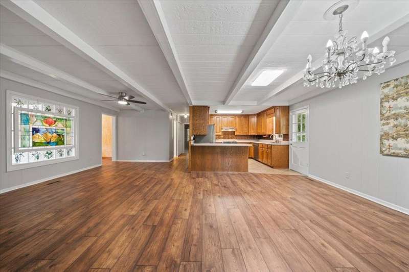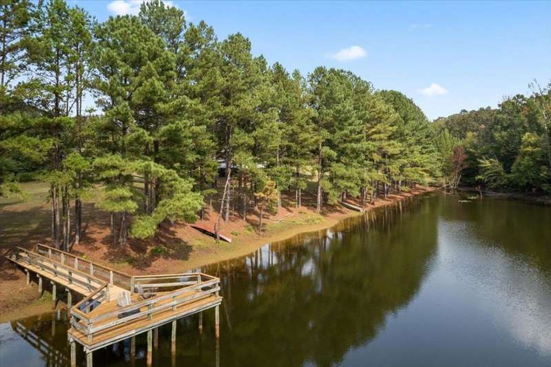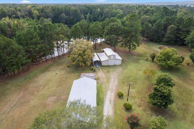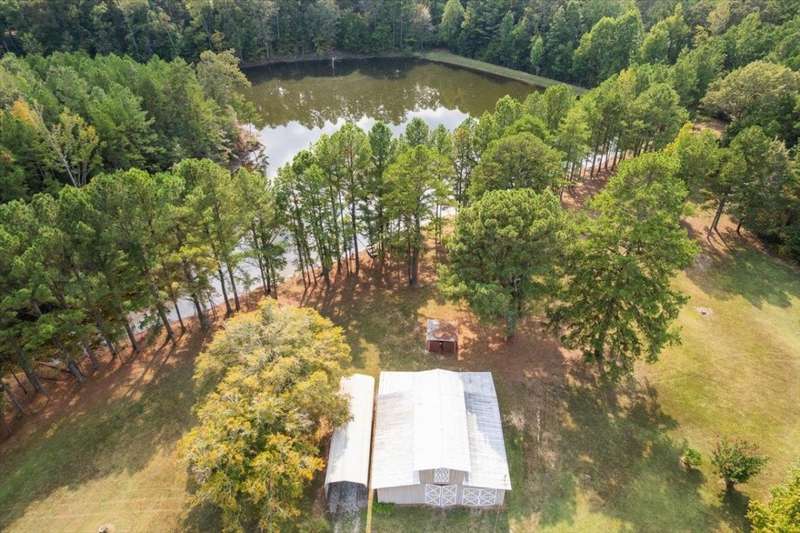 Welcome to your private retreat in Hornsby, TN- 12 acres of beautifully maintained land complete with a pond and boat dock, a setting that feels like your own park. This Cape Cod?style home has 3 BR2, 2 1/2 baths, plenty of space both inside and out. Step into the huge den, where soaring ceilings, painted wood beams, and walls of windows showcase stunning views of the property. Walk out to acres of open space, water views, and even your own grapevines growing by the pond. The deck off the kitchen is perfect for taking it all in. The LR/DR features charming wood beams and flow seamlessly into the kitchen. A 2-car garage w/ worktable, plus a barn & separate workshop, provide endless options-hobbies, storage, working the land. With a maintenance-free exterior of vinyl siding/stone accents, big-ticket updates with new roof & HVAC in 2022, the home offers peace of mind. A power gate to be provided by the seller. Don't miss your chance to own a one-of-a-kind piece of Hornsby.