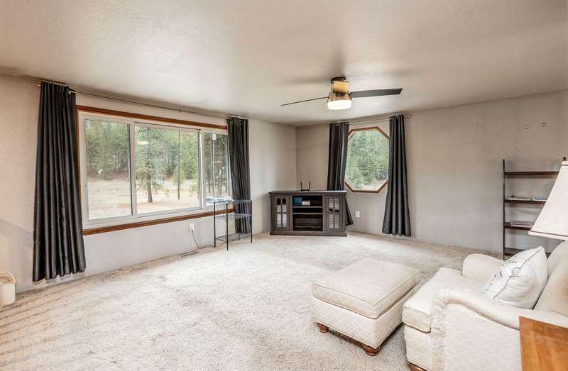 Charming 4-Bedroom, 2-Bathroom Home on 10.6 Acres with Seasonal Pond close to Colville! This peaceful 4-bedroom, 2-bathroom home sits on 10.6 private acres, just 10 miles from Colville. The spacious open floor plan features bright living areas with large windows offering scenic views. The partially finished basement adds extra living space. The main suite and three additional bedrooms are perfect for a family, home office, or guests. Outside, the property boasts 10.6 acres of open fields, wooded areas, and a seasonal pond. A large barn and multi-bay storage shed provide ample space for storage or hobbies. Enjoy the privacy of rural living with easy access to Colville for shopping, schools, and amenities.