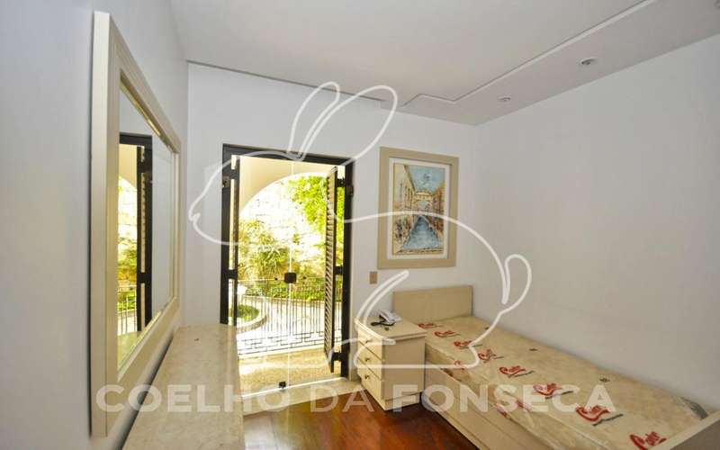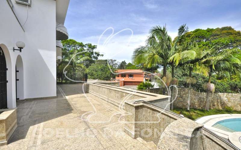 Maravilhosa mansão em região nobre de Interlagos, cercada de muito verde, com terraços voltados para a represa. Localizada em rua tranquila, de frente para praça. Á 10 minutos do Colégio PACA- Pan American Christian Academy. Acabamento primoroso com mármore italiano, construção ZKF, projeto luminotécnico Dominici. Área externa com piscina, casa independente para caseiro com 2 suítes, canil. A casa possui sauna, vestiários e elevador.