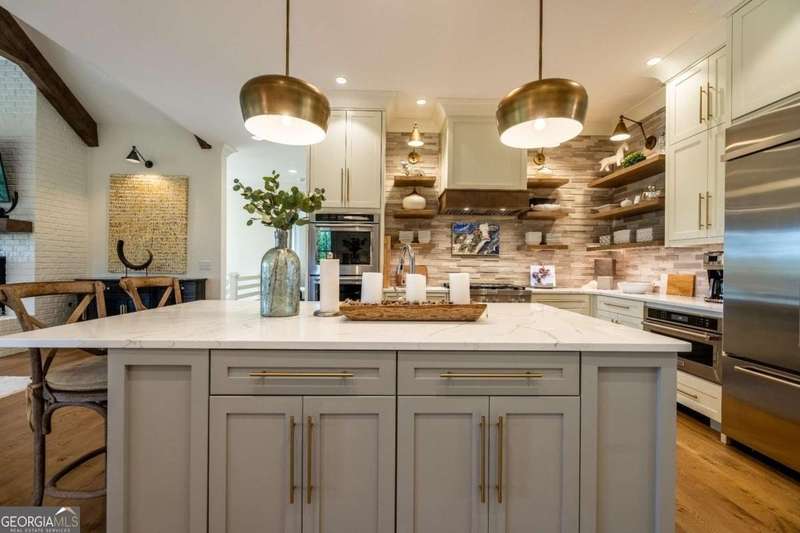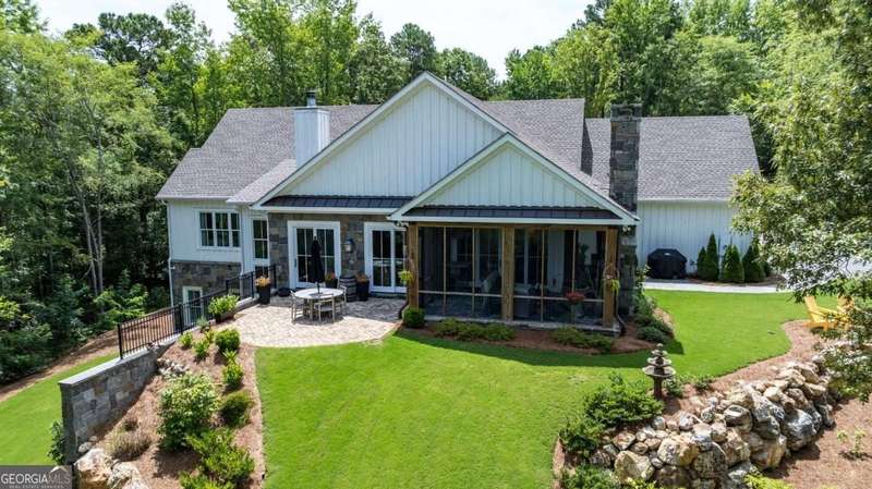 Built in 2021 by the highly respected Brooks Building Group, Inc., this custom home is nestled on 12.45 private, wooded acres in the sought-after Beaver Creek Plantation. With 3 bedrooms and 2.5 baths, it showcases exceptional craftsmanship, thoughtful design, and quality natural materials throughout. As part of the neighborhood, you'll also enjoy access to a private, spring-fed, approximately 5-acre lake stocked with fish. From the moment you step through the custom iron-and-glass arched front door, it's clear that every detail has been carefully considered. The open main level is designed for everyday comfort and effortless entertaining, featuring 9" character-grade white oak floors, 10' ceilings, detailed cove molding, and designer lighting. The chef's kitchen, anchored by custom cabinetry from Billy Crawford, includes solid quartz countertops, a built-in refrigerator, 6-burner gas cooktop, double ovens, warming drawer, ice maker, beverage fridge, and an oversized walk-in pantry. Just off the kitchen, the dining area offers a generous space for gathering. The primary suite offers peaceful views and a spa-like bathroom with heated marble floors and a fully customized California Closet. All secondary closets are also wood-built. A large laundry room adds functionality, while a screened-in porch with a gas fireplace provides a comfortable retreat year-round. Custom faux finishes in the study and powder room add an artistic touch. Downstairs, you'll find two additional bedrooms and a beautifully finished full bathroom. A large unfinished area provides the flexibility to create additional living space-ideal for a home theater, fitness room, workshop, or hobby space. Constructed with enduring materials like thick natural stone and wood (no manmade siding), the home also features Marvin windows, solid wood interior and exterior doors, spray foam insulation, three HVAC units, two tankless water heaters, and a dehumidifier. A backup generator supports the main floor HVAC system, water heater, refrigerator, and select kitchen appliances-designed to keep essential systems running comfortably during a power outage. The landscape plan was professionally designed by Watters & Associates and complements the setting, while raised garden beds and a custom-built shed add extra functionality to the property. Private, peaceful, and impeccably executed, this exceptional property is shown by appointment only.