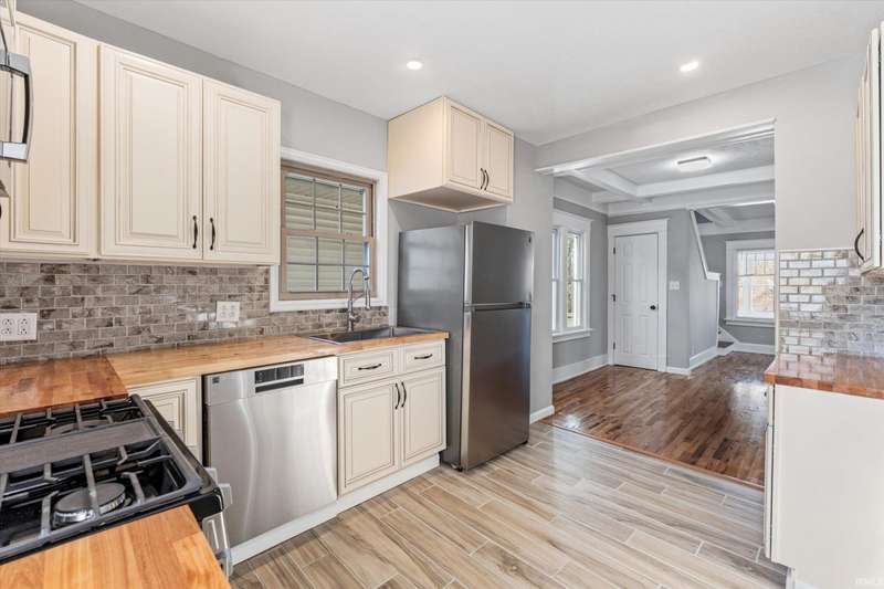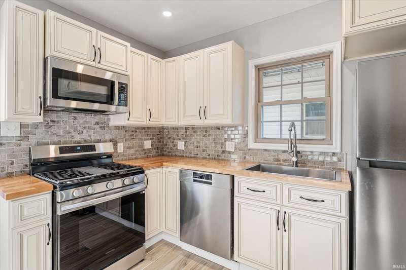 Charming 3-Bedroom, 2-Bath Newly Remodeled Home Near River Walk & Notre Dame. Discover your perfect Mishawaka home just two blocks from a picturesque river walk and only five miles from the prestigious Notre Dame University. This beautifully remodeled 3-bedroom, 2-bathroom home blends modern upgrades with timeless charm, offering comfort and convenience in an unbeatable location. Step inside to find a spacious, open-concept living area with brand-new flooring, fresh paint, and stylish finishes throughout. The updated kitchen features sleek butcherblock style countertops, modern cabinetry, and brand-new appliances-ideal for cooking and entertaining. Both bathrooms have been tastefully renovated with contemporary fixtures and design. Park your cars in the 2 car detached garage and enjoy low maintenance life in your new home that features new windows, roof, siding, furnace, A/C and dual washer/dryer hookup. Have a get together in your private yard that is perfect for relaxing. The walk out basement could be finished to add an 2-3 additional rooms. Whether you're strolling along the nearby river walk or heading to campus for events, you will appreciate the proximity to all that this neighborhood has to offer. Don't miss the chance to make this home yours, with its prime location, modern finishes, and spacious layout.