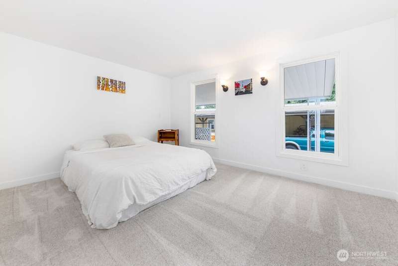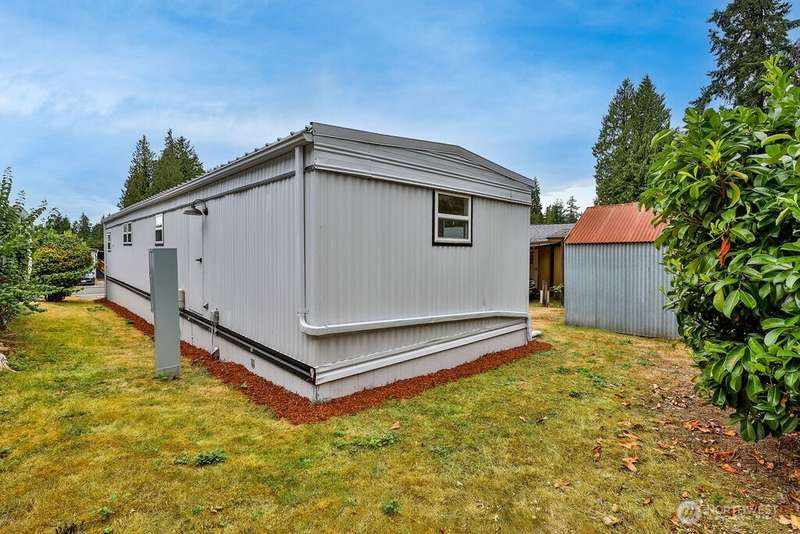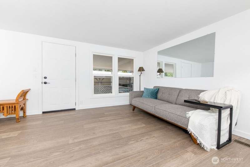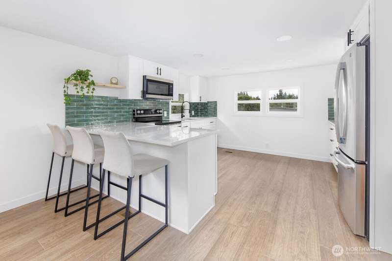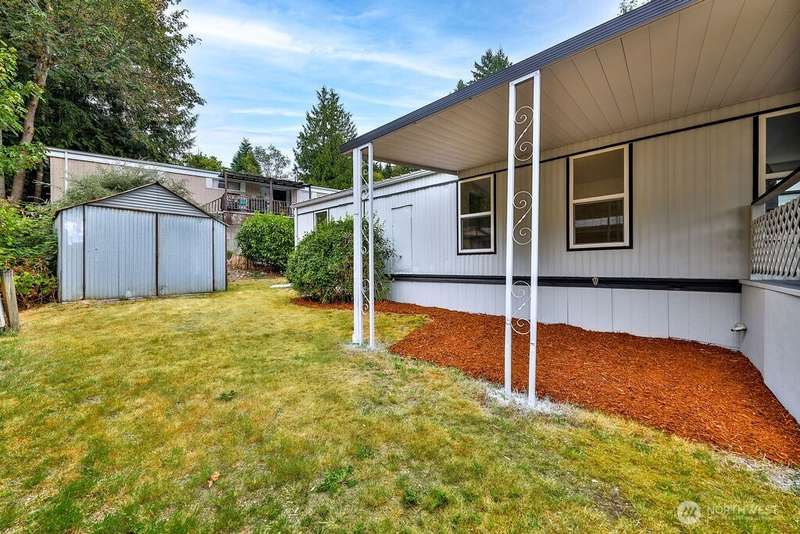 Beautifully renovated 2-bed, 1-bath home in Bothell! Enjoy a brand-new kitchen with quartz countertops, peninsula seating, stainless steel appliances (fridge, stove, microwave, dishwasher) plus a stackable washer & dryer. Pioneer soft-close cabinets, new vanity, and new shower add modern style. Fresh drywall, vinyl windows, luxury vinyl flooring, and plush bedroom carpet throughout. Relax on the covered porch overlooking a manicured yard, with added storage shed and easy-access stairs. Quiet location with no street noise, yet close to everything Bothell has to offer. Move-in ready with upgrades inside and out!