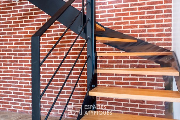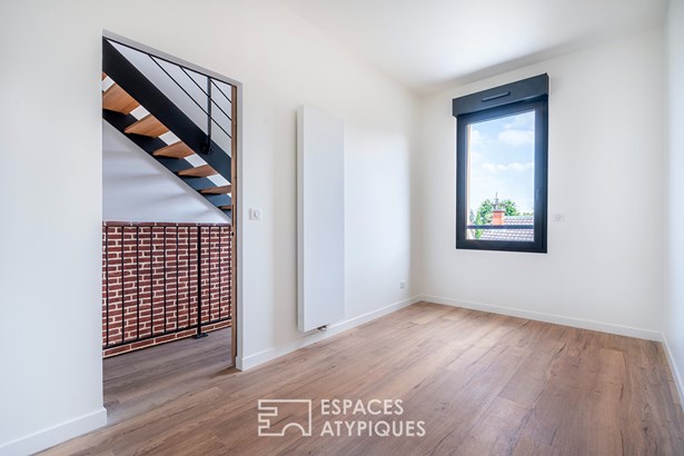 Nestling in a quiet, low-traffic street, this semi-detached house, built in 2024, is organised around a custom-built metal staircase, the centrepiece of the project, designed as a connecting thread between the floors. Each level is designed as a living space, with its own perspectives and external extensions: garden and terraces.