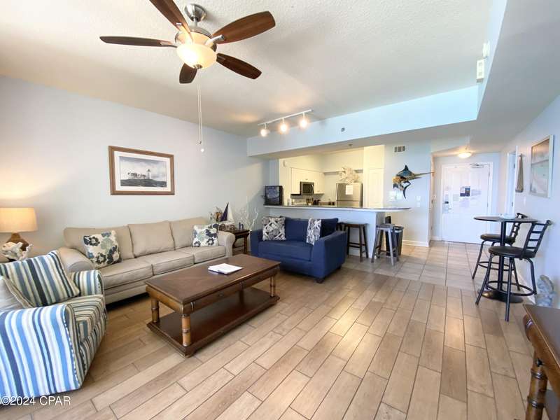 Beautifully Furnished Gulf-Front CondoExperience coastal living at its finest with this exquisitely furnished 2-bedroom, 2-bath condo overlooking the Gulf of Mexico. The unit features a Gulf-front master bedroom and a spacious balcony with views of the pool, making it an excellent rental opportunity.Inside, you'll find tile flooring throughout, elegant granite countertops, and modern updates including a new refrigerator, new washer/dryer, and new Polywood patio furniture. The condo has been freshly painted and comes fully furnished, rental-ready, with future bookings already in place. The living room offers a sleeper sofa and an accent chair that converts to a twin bed, enhancing comfort and flexibility.Well-maintained and move-in ready, this condo is part of the Shores of Panama resort, which boasts an array of amenities including expansive beach frontage, a large lagoon-style pool, an indoor heated pool, a fitness center, a spa, a tiki bar & grill, an ice cream and coffee shop, and a variety of summer activities for all ages. Centrally located, the resort is close to shopping, dining, and entertainment options.Don't miss out on this exceptional property--call to schedule your visit today!