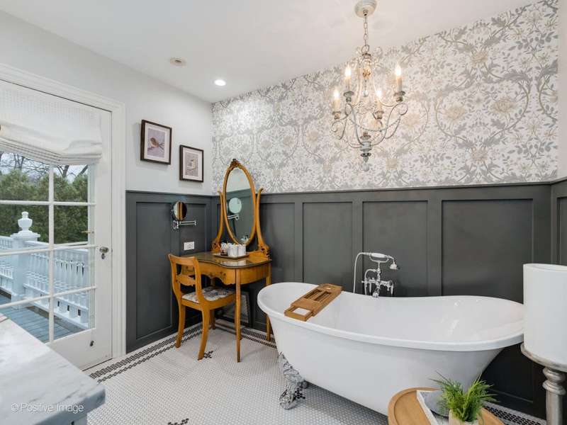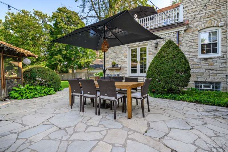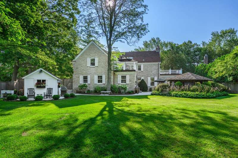 Beautifully renovated lannon stone luxury residence steps from town, train and the lake. Enter through the grand center hall that leads to both the dining room with floor to ceiling windows and an inviting living room with wood burning fireplace and views of the lush yard. The renovated Chef's kitchen features custom cabinets, high-end appliances including a La Cornue range, double oven, beverage fridge, soapstone counters and a butcher block island with prep sink as well as a second stairway to the 2nd floor. The first floor is complemented by the perfect game room leading to a back patio and dramatically decorated library/office offering a perfect retreat that opens to a patio overlooking the expansive 6/10+ acre lot. Ascend to the second floor, where a beautiful brand new primary spa suite with soaking tub, separate shower, a spacious walk-in closet and a walk out deck. Three additional bedrooms, two sharing a Jack and Jill renovated bath, and one with a 2nd private renovated en-suite bath complete the second-floor living space. The third floor offers versatile updated finished space with a 5th bedroom, ideal for an additional office along with a family room and additional storage rooms. The beautifully renovated lower level space is perfect for family entertaining around the custom built-in bar space and wood-burning fireplace in the recreational room. Additional exercise room/play area, work room, wine closet, ample storage, updated powder room, and all new laundry area. The lush property boasts an expansive lawn with stone patios, outdoor fireplace complemented by a charming decorated gazebo screened porch with electric, a new shed. The 2-car attached and heated garage with new epoxy floors. Two new double exterior doors. New fireplace liners, flood control, 2 electrical panels, 2 new sump pumps with battery back ups, updated boiler auto-feeder and steam traps, Space Pac & 2 heat and A/C splits for the 3rd floor & basement water heater. New outdoor fireplace, shed, flagstone walkways, patio extensions, redwood fence, exterior lights, sprinkler system, copper gutters and asphalt driveway - all new. This home has been well maintained, updated and ready to move right in!
