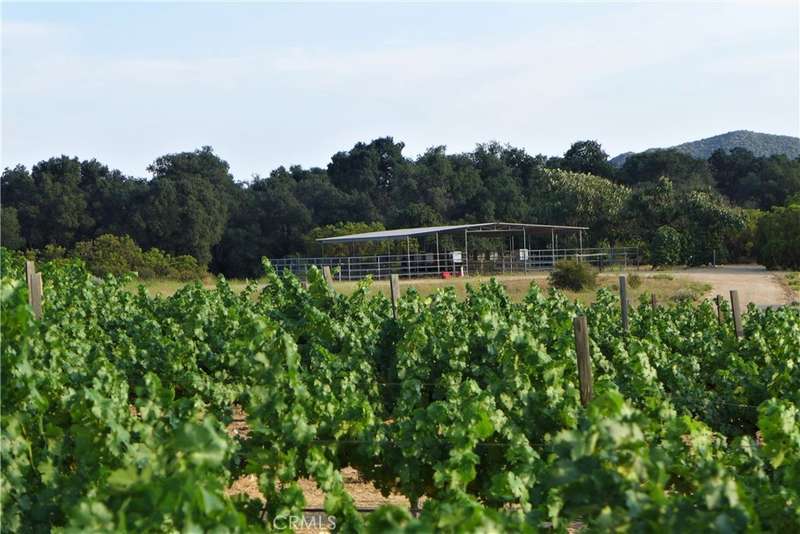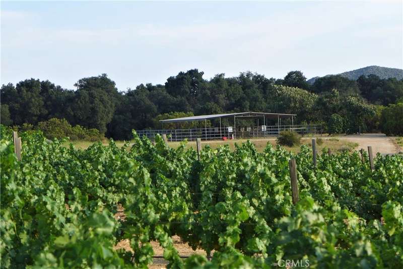 Welcome to Rancho de los Robles - where rustic charm meets the equestrian lifestyle. Nestled under the shade of old-growth majestic oak trees, this beautiful 40-acre horse ranch offers the perfect setting for anyone seeking the ultimate in country living. At the heart of the ranch is a charming 2-bedroom, 2-bath ranch-style home, radiating warmth, character, and tranquility. Step outside and discover a fully equipped equestrian setup, including 5-stall barn with tack room and hay loft, 10-stall mare motel, each stall complete with its own water source. Western arena with spectator stands, round pen, and dressage ring. 13 fenced pastures with electric tape - ready for rotational grazing. Water on the ranch is abundant and well-managed with 3 wells, static water at 32 feet, and 10,000-gallon storage tank. Enjoy the serene, fully stocked pond with a fountain and resident ducks--a true retreat. Fully self sustainable, with a solar array of 200 panels with battery backup system, capable of powering much of the ranch. Over 75% of the acreage is irrigated, allowing for the expansion of the existing one-acre Cabernet Sauvignon vineyard, which currently yields about 5,000 pounds/year of grapes. In addition to the vineyard, over 30 fruit trees provide a delicious bounty season after season. When its time to get away and explore, the ranch is a gateway to adventure with direct access to the Pacific Coast Trail, California Riding & Hiking Trail, and the North Mountain Wine Trail. Whether you're training horses, cultivating vines, or simply embracing nature, this is not just a property; it's a lifestyle. Make it your legacy, your retreat, your home.