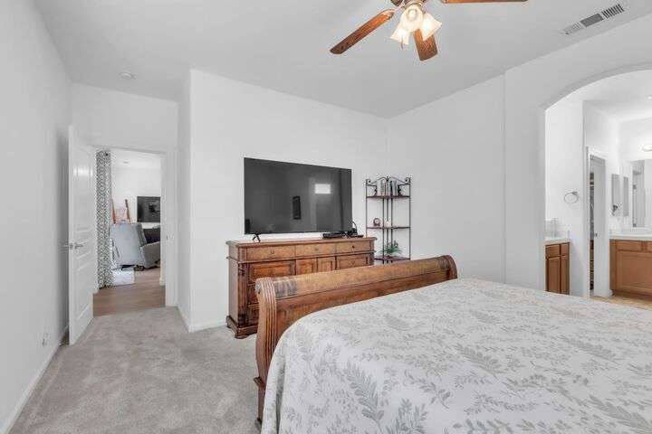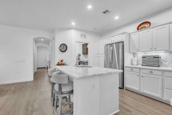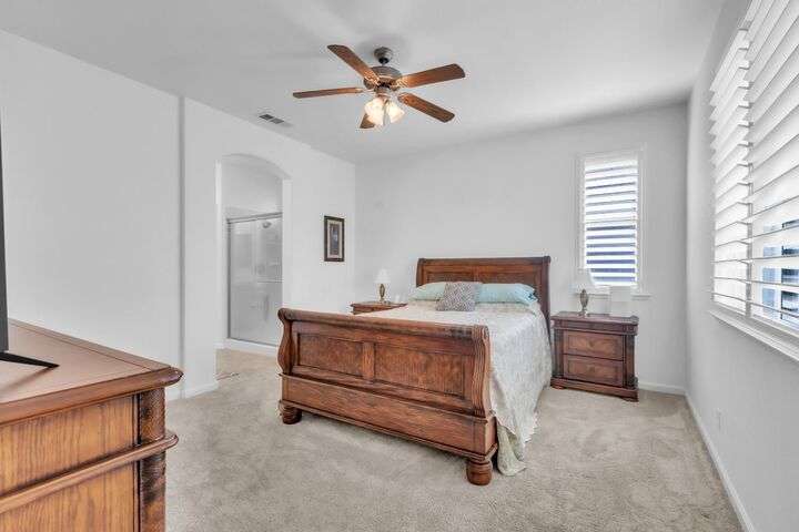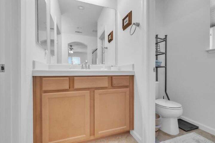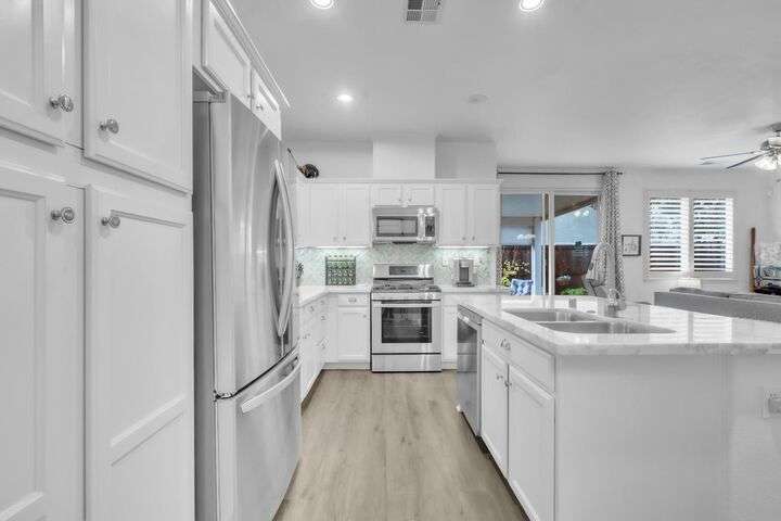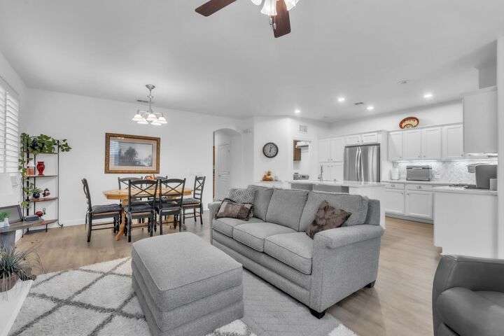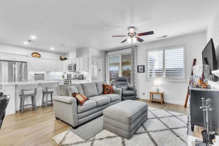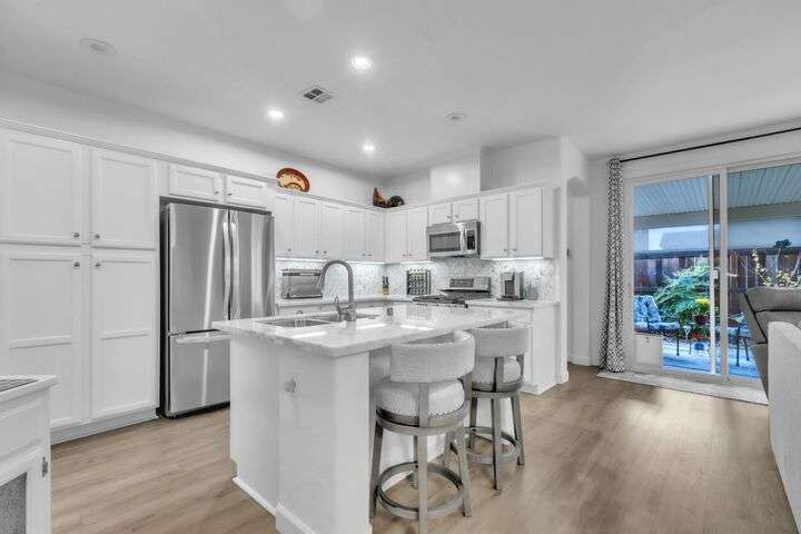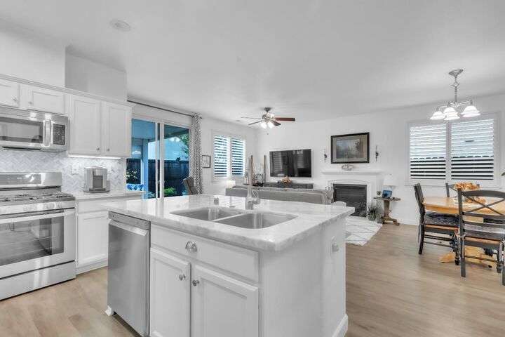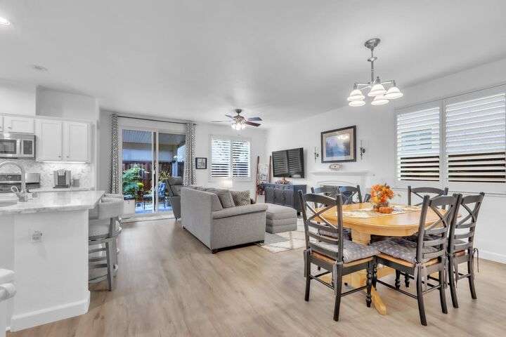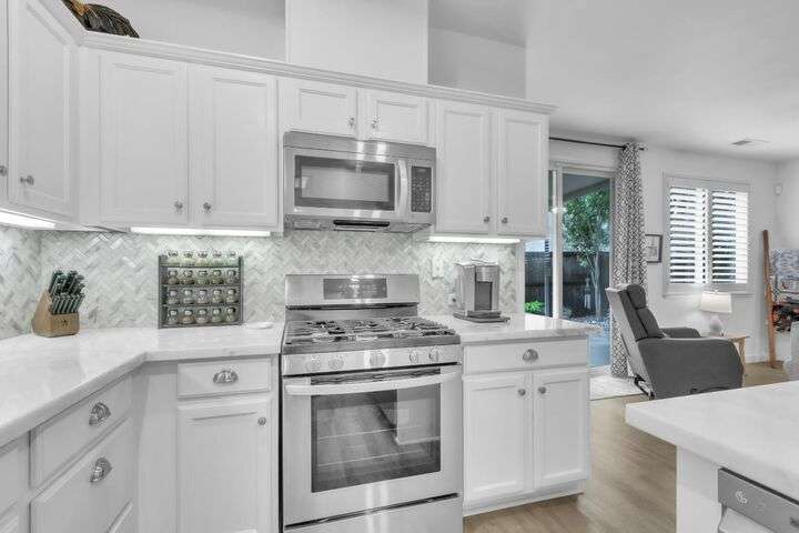 Move-in ready and beautifully upgraded home in the highly desirable gated Monterey Village community! Bright and airy layout features two spacious guest bedrooms, light filled guest bathroom, and cozy dining/family room with a low-maintenance gas fireplace and elegant window shutters. The pristine kitchen offers wall-to-wall cabinetry, stainless steel appliances, quartz countertops, custom backsplash, and an island with space for bar seating. Peaceful landscaped backyard includes a covered patio with retractable shades for year-round comfort and privacy. The primary suite is spacious with an archway leading to the master bath, featuring dual vanities, large shower, and walk-in closet. Gutter guards, brick exterior accents, and HOA-maintained front landscaping add convenience and charm. Community amenities include a sparkling pool, spa, park, BBQ area, and two secure gated entrances. Close to award winning schools, Franklin High, library, shopping, dining, parks, and transit. Don't miss out on this adorable abode, come see it today!