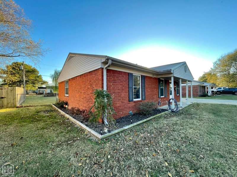 Cute low maintenance home on a slab, all brick, metal roof, no carpet, separate laundry room, covered back patio - there are lots of details to love about this one! The primary bedroom has a large walk in closet. Luxury vinyl plank flooring was put in the kitchen, living, and hallway in 2023, and luxury vinyl tile was put in the bathroom. The dishwasher and microhood were also installed in 2023. The water heater was replaced in 2020. The metal roof was installed in 2016 and new AC in 2017. This one is ready to move in at an affordable price!