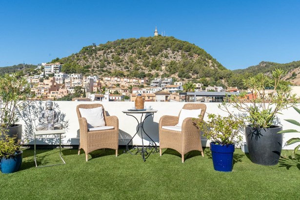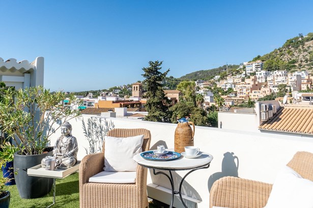 Located in the sought-after neighborhood of Génova, southwest of Palma, this exclusive loft sits in a quiet residential area with excellent connections to the city center. The property is close to schools, local restaurants, natural spots like the Serra de Na Burguesa, and offers easy access to the coast. It also comes with a vacation rental license — a valuable asset for investors.~~The interior has been refurbished in a loft-style concept, offering over 140?m² of open-plan space with high ceilings, exposed beams, and natural wood flooring. The Poggenpohl kitchen is integrated into a spacious living-dining area.~There are two double bedrooms, both with en-suite bathrooms. The main suite stands out for its Italian design finishes and sea views right from the bed.~Climate control includes ducted air conditioning, a fireplace, and infrared heating.~~Outside, a large private terrace of 135?m² offers open views of the sea and mountains, designed to ensure privacy and comfort. The property also includes a private garage with direct access and automatic shutters along the main façade, adding both functionality and security.