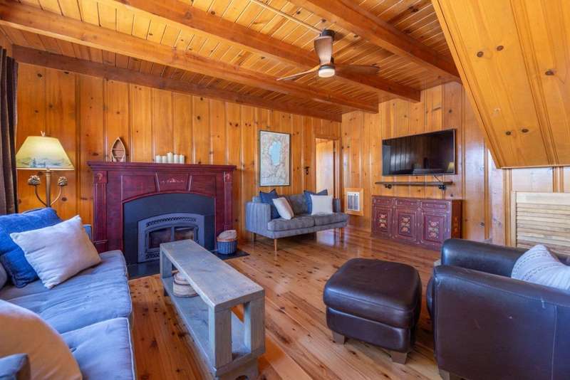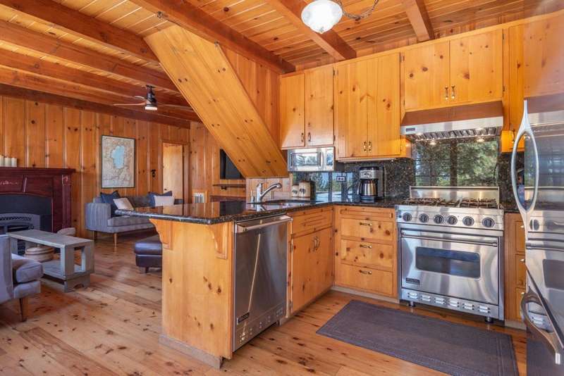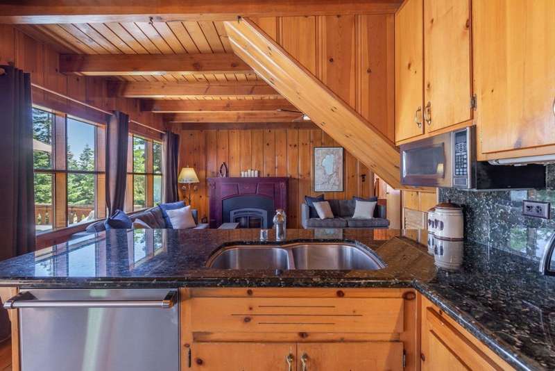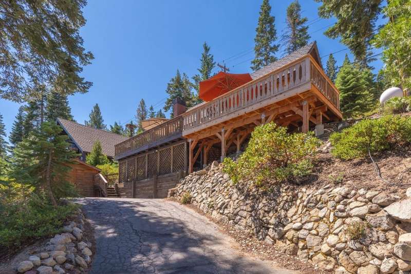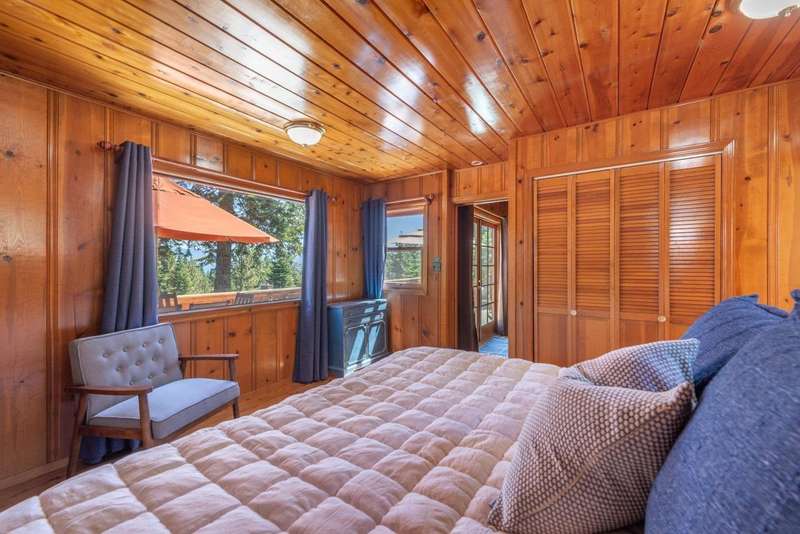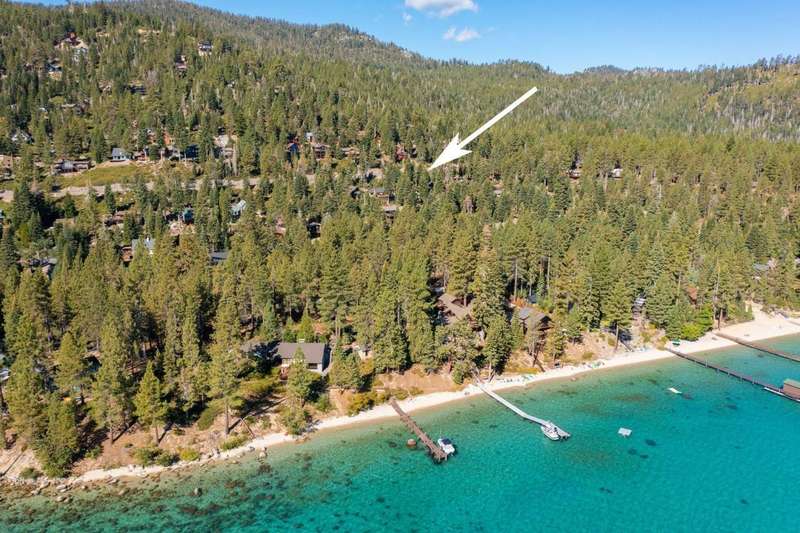 This 4-bedroom, 2-bathroom cabin is located below the highway on the coveted lower Rubicon loop. Just a short walk from a private path leading to Rubicon's white-sand HOA beach, shared pier, buoy field, and volleyball court, this property offers rare and easy lake access. The cabin embodies the charm of 'Old Tahoe with warm wood interiors, a cozy fireplace, and a layout designed for gathering and relaxation. The open kitchen and dining area create a welcoming space, while the expansive upper deck extends the living space outdoors, perfect for lounging and entertaining. Lake views can be enjoyed from the deck, living room, master suite, and lower-level guest room. The driveway easily accommodates three cars, and a large storage shed at the top provides ample space for gear. An exterior closet with a stackable laundry unit adds convenience.