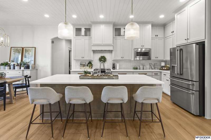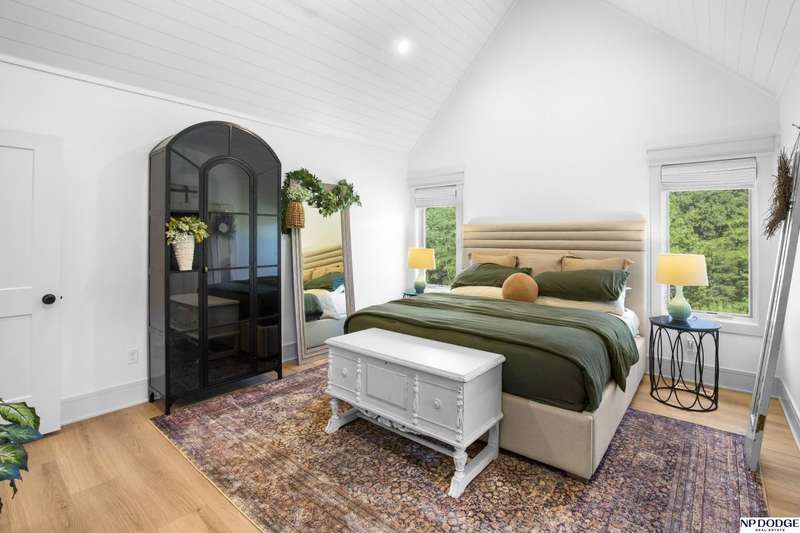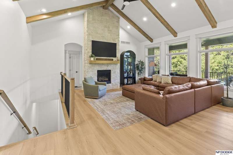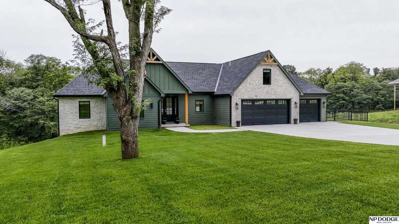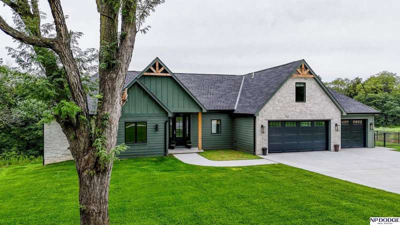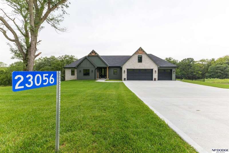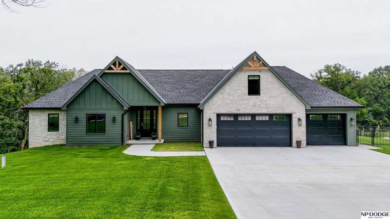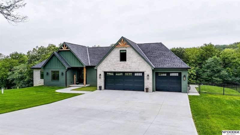 Open House Sunday 10/191-3. Price improvement! Showings Daily By Appointment. Why wait to build when you can enjoy this under-a-year-old luxury estate on 3.28 acres in a premier neighborhood? Architecturally stunning and filled with refined finishes, it offers soaring ceilings, a vaulted family room with timber beams, stone fireplace, and walls of windows. The spa-style primary retreat boasts a soaking tub, tile shower, dual vanities, and massive walk-in closet with bonus storage. Three guest bedrooms feature custom closets and designer details. The chef's kitchen impresses with a massive island, premium appliances, ceiling-height cabinetry, and hidden pantry with Costco door. Upstairs: a private guest suite. Oversized 3-car climate-controlled garage. Unfinished walkout lower level with 13' ceilings-perfect for golf simulator, wet bar, and bath. One-third fenced, wooded views, wildlife, reverse osmosis, sprinklers, and generator wiring.
