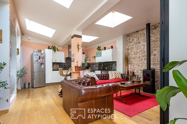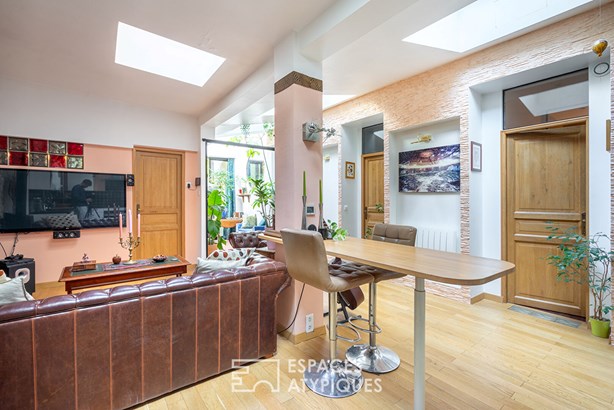 A true haven of peace in the immediate vicinity of the Bassin de la Villette and the Canal de l'Ourcq, this rare property, entirely redesigned by an architect, combines a loft feel with family comfort in a dynamic and creative neighborhood.