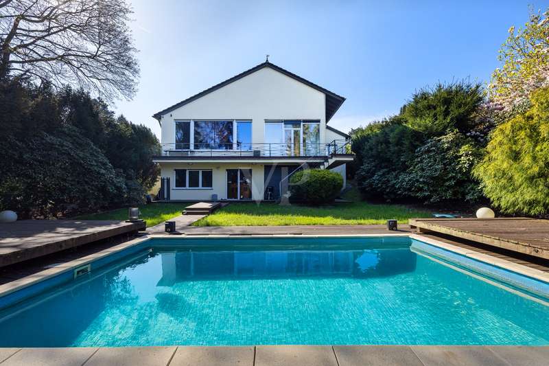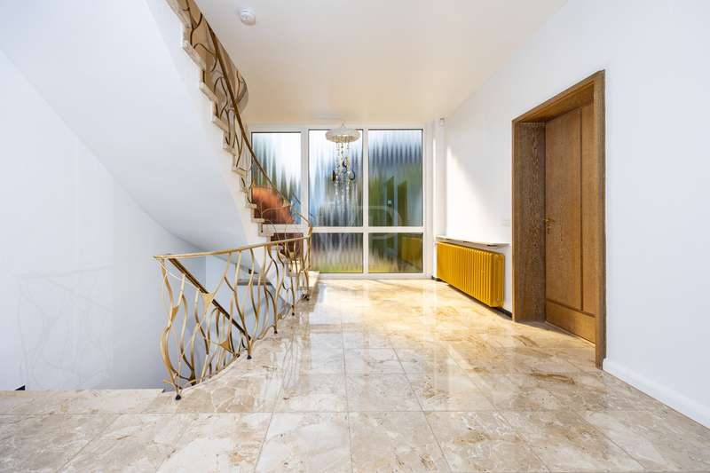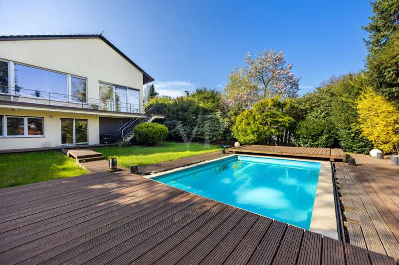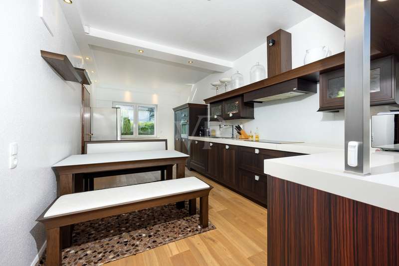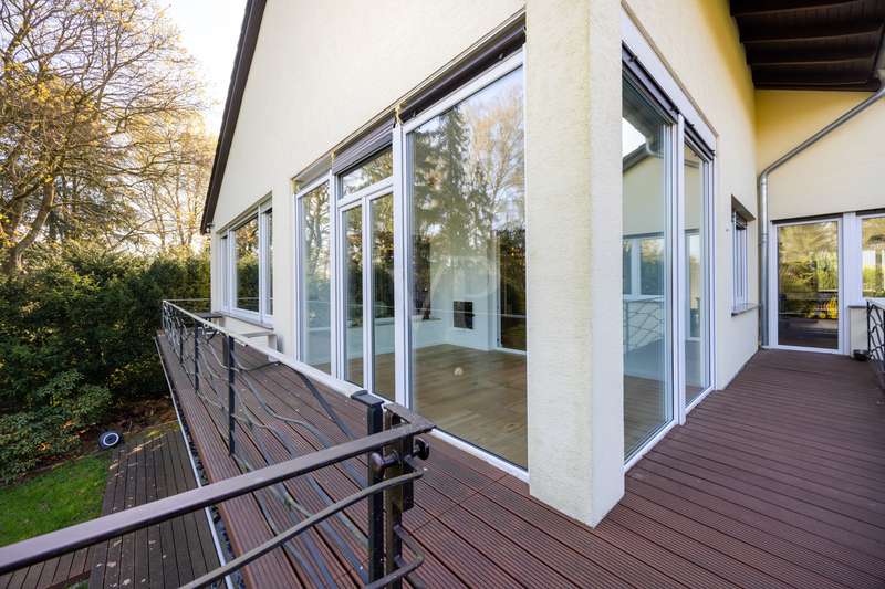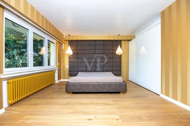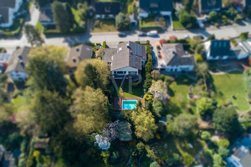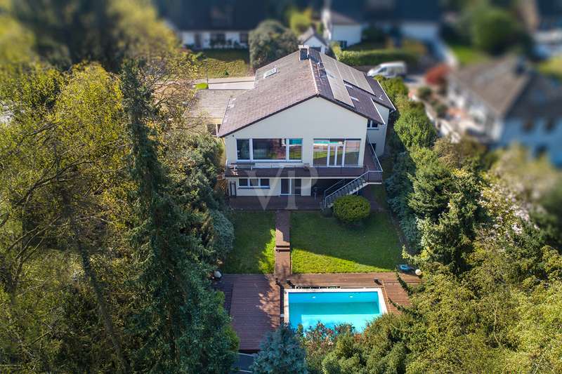 For sale is an impressive detached house that was built in 1968 as a solid construction. The property was completely renovated in 2016 and is now in first-class condition. Five rooms, including 3 spacious bedrooms, a generous dressing room and a modern bathroom, are spread over a generous living space of approx. 280 m². The family dressing room consists of two originally separate rooms that have been combined into one spacious room. Should you require a further room, it is possible to separate these rooms again and return them to their original state. The heart of the house is the impressive living room with a ceiling height of four meters, which offers plenty of space for individual furnishing ideas. The high-quality furnishings are complemented by fine marble floors and real oak flooring, which create a stylish living ambience. Particularly noteworthy are the windows, which were renewed in 2016 and are fitted with bullet-proof glass, which provides excellent sound insulation as well as security. A video-monitored alarm system offers an additional sense of security within your own four walls. The central heating system, powered by a modern oil heating system from 2016 with a 4,500-liter oil tank, guarantees an efficient and reliable heat supply. The property also has a photovoltaic system, which further raises the energy standard. The plot measures approx. 998 m² and offers extensive outdoor areas. One highlight is the approx. 6-metre-long pool, which is protected by a cover and thus enables an extended period of use. This is also heated by electricity from a photovoltaic system, which further increases energy efficiency. The plot offers plenty of space for garden lovers as well as additional outdoor development opportunities. The garden shed built in 2023 offers additional storage space for garden tools and equipment. You can enjoy direct access to the garden from a spacious balcony, which is ideal for outdoor activities and sociable evenings outdoors. For future expansion plans, there is another compartment in the roof, which has already been insulated and is ideal for converting into another room. This option offers additional space for various uses, be it as a study, hobby room or additional sleeping accommodation. The property is located in a quiet residential area that is well connected to urban infrastructure. Shopping facilities, schools and leisure activities are available in the surrounding area, making the house an ideal residence for families and people who value a harmonious environment. Overall, this detached house offers a successful combination of generous space and high-quality features that have been thought through down to the last detail. It invites prospective buyers who pay particular attention to quality, comfort and space. You are welcome to arrange a viewing appointment to see the advantages of this property for yourself.