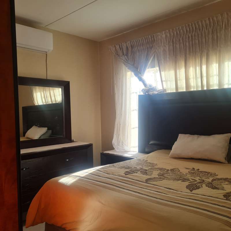 A beautiful property in a secured complex suitable for a newly wed couple. Closer to amenities such as schools, shopping centers, etc. Equipped with air conditioner in the main bedroom. Fully fitted kitchen All bedrooms fitted with cupboards. Make a viewing appointment