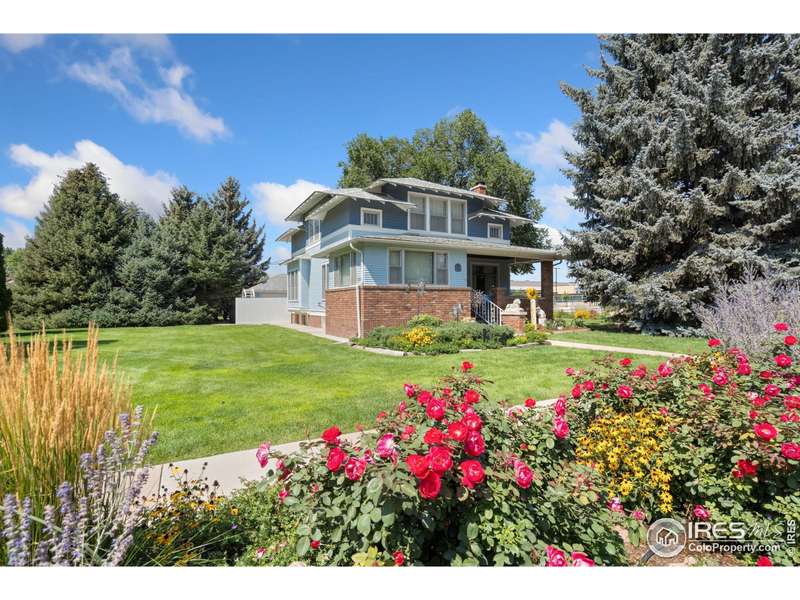 Welcome to 28 Park Avenue - A Rare Historical Gem in the Heart of Eaton! Step into timeless elegance with this impeccably maintained two-story home, ideally situated on the corner of 1st Street and Park Avenue. Built in 1920, this iconic property is one of Eaton's most cherished historic residences-offering classic curb appeal, thoughtful updates, and an unbeatable location just a short stroll from schools, City Park, and the library. Nestled on a beautifully landscaped 14,000 sq ft lot, this 3,200 sq ft home seamlessly blends original character with modern convenience. The welcoming front porch sets the stage for a stunning interior that features refinished original hardwood floors, a gorgeous coffered ceiling, and a cozy gas fireplace in the living room. Host special occasions in the formal dining room, highlighted by an antique chandelier and built-in china hutch-a true showcase of early 20th-century craftsmanship. The updated kitchen offers a generous island, newer Andersen windows, and ample space for everyday living. A main-floor study or optional 4th bedroom provides flexibility for work or guests, and a convenient powder room completes the main level. Upstairs, you'll find three generously sized bedrooms, each with large walk-in closets, plus a beautifully maintained full bath. The finished basement expands your living space with a custom Georgia marble wet bar, a family/recreation room, a 3/4 bathroom, a spacious laundry room, and a dedicated storage area. Step outside and enjoy the immaculate yard with a 10-zone sprinkler system, perfect for relaxing, playing, or hosting gatherings. The large patio area, mature landscaping, oversized detached garage, and two additional storage sheds complete the outdoor experience. This beloved home has had only three owners in over 100 years-a testament to its enduring quality and timeless charm. Don't miss your chance to become part of its legacy-schedule your private showing today!