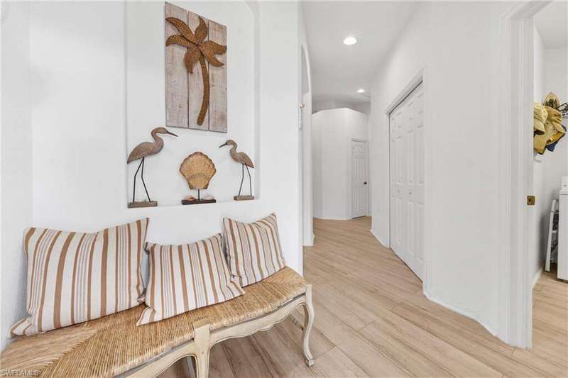 Discover a rare opportunity TURNKEY Updated Villa with 3 Beds, 2 Full Baths, 2 Car-Garage, nearly 1,500 Sq Ft of Living Space, Preserve View, in the highly sought-after gated community of Mandalay at Naples, where LOW HOA fees and an unbeatable Naples location come together. Nestled just off Rattlesnake Hammock Road, this meticulously kept and FULLY FURNISHED attached villa places you moments from Santa Barbara Blvd, US-41, top-rated schools, endless dining and shopping options, and only 8 miles to the iconic Naples Pier. Step inside to an inviting and stylish living space featuring high ceilings, large windows, and elegant luxury plank vinyl flooring. The open-concept layout allows for effortless living and entertaining, with a seamless flow from the kitchen complete with modern appliances, plentiful countertop space, and breakfast bar - into the dining and living areas. Enjoy tranquil wooded views from the enclosed lanai, offering oversized covered space to relax and unwind year-round, plus direct backyard access for added convenience and privacy. The spacious primary suite serves as a private retreat, featuring large walk-in closets, dual vanities, and a luxurious walk-in shower. Two additional generously sized bedrooms offer flexibility for guests, a home office, or hobbies, and share a well-appointed full bathroom with tub/shower combo and ample storage. Rest easy with major updates already completed, including a roof install in 2020, AC from 2017, and hot water heater from 2020. Additional highlights include an attached two-car garage, in-residence laundry, and abundant storage throughout for peace of mind. Mandalay residents enjoy a sparkling community pool, spa, and cabana all within a private, gated setting and close to Naples' best beaches, dining, entertainment, and recreation. This special villa offers comfort, convenience, and peace of mind in one of the area's most desirable locations, an exceptional opportunity that won't last.