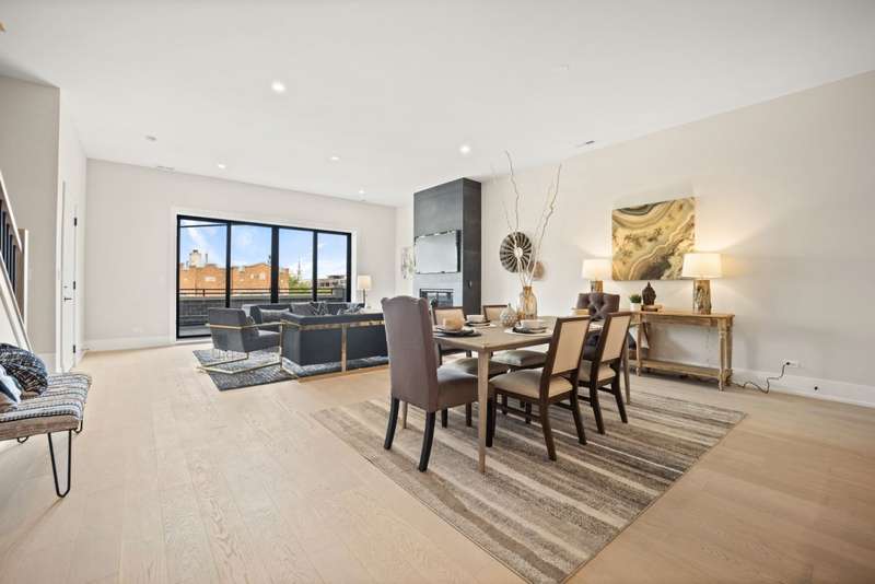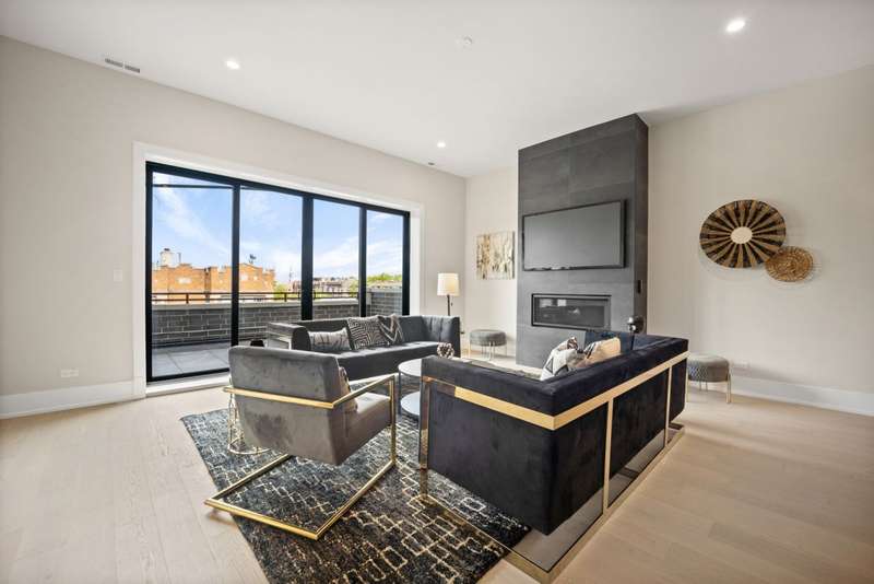 Located in Irving Park, this oversized 3-bed, 2-bath unit offers 2,000 sq. ft. of open-concept living space with 10.5 ft ceilings, 8 ft solid core doors, and hardwood floors. The spacious living room features a fireplace and sliding glass doors that lead to a large balcony with a gas line. Andersen doors and windows throughout. The chef's kitchen boasts custom cabinetry, a vented hood, quartz countertops, Bosch stainless steel appliances, and a generous island. The primary en suite includes a walk-in shower, double vanities, and plenty of closet space. Ideally situated just steps from the Brown Line, Chicago Riverwalk, and Horner Park's 57 acres of recreational space. VARIETY OF FLOOR PLANS.