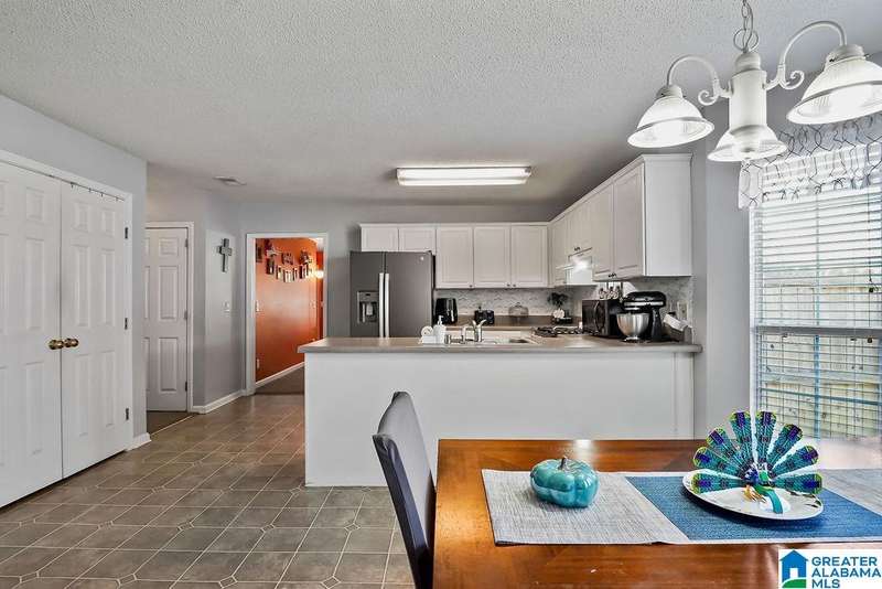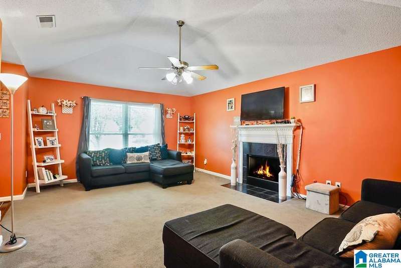 This elegant, single-level residence presents ample living space, with 3 bedrooms and 2 baths, characterized by vaulted ceilings that create an expansive atmosphere. The living room features a striking fireplace with a gas starter, offering a cozy and inviting ambiance. The patio was turned into additional living space and further extends the living area, providing additional versatile space. The generously sized eat-in kitchen accommodates a substantial dining area, enhanced by a charming bay window. Practical amenities include a two-car garage with convenient pull-down stairs leading to attic storage, alongside a large storage building situated on a concrete pad in the backyard. The fully fenced backyard, complete with a covered gazebo, is ideally suited for outdoor entertaining. Located within the desirable Cahaba Crossing neighborhood, this home offers superb accessibility, being mere minutes from I-20 and I-459.