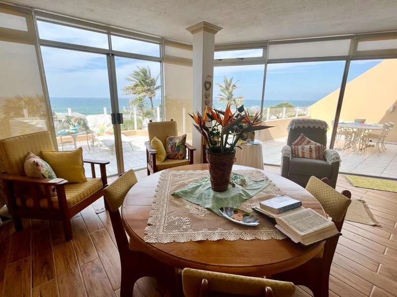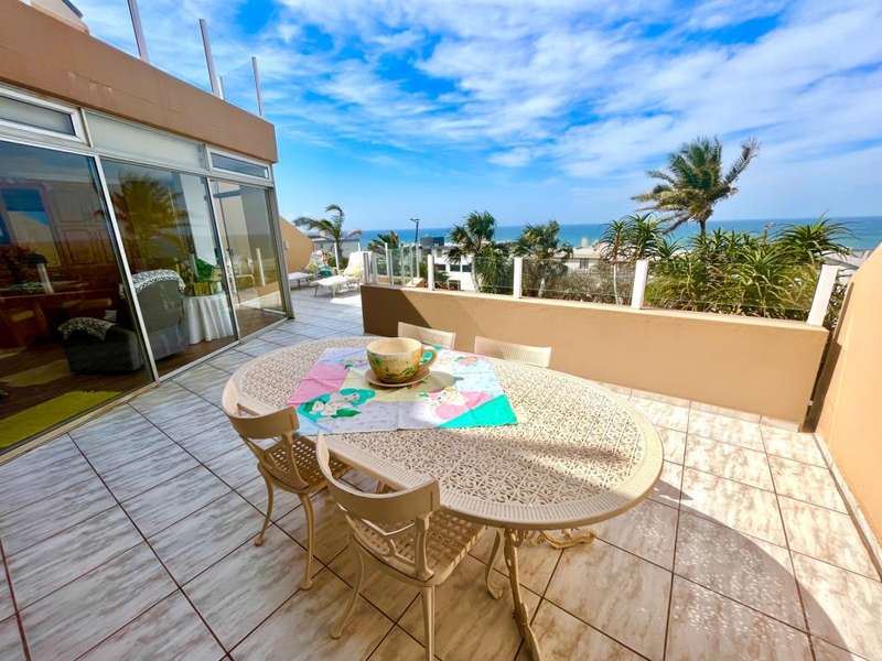 LUXURIOUS GEM..... With breathtaking sea views this stunning renovated apartment with top class finishes is located in sought after complex in Manaba walking distance to the beach. Quality is the key word.... Open plan living area flows from the entrance to the beautiful kitchen with granite tops, breakfast nook, light and airy spacious living area leading out to the spacious balcony ...the perfect place to relax, unwind and admire the stunning sea views. There are 3 bedrooms with built in cupboards and 3 modern en-suite bathrooms. The master bedroom has an en-suite and offers stunning sea views with glass sliding doors opening to the balcony. The apartment has a lock-up garage with a laundry which leads directly into the apartment via the staircase. The complex is secured with automated gates and electric fence with communal pool and is ideally situated for permanent or holiday living. Walking distance to the ocean with such a beautiful interior- tremendous value throughout! Call now to view!