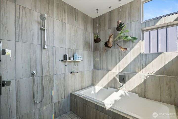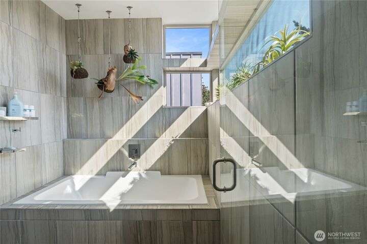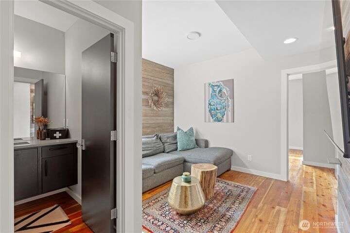 Quintessential Seattle modern home, tucked away in the vibrant Columbia City. Meticulously built by Dwell Development this home is Certified 5-Star Built Green & features many smart upgrades - solar panels, motorized shades, and Triple-pane windows to improve the quiet AND energy efficiency of your new home. Spanning an entire floor, the luxurious main suite boasts walk-in close and a large spa-like bathroom w/ large soaking tub, rain shower, & beautiful natural light! Large rooftop deck w/ view & automated awning. Lower level flex space great for STR, mother-in-law, long term tenant, office, gym or connect to main house. Kitchenette, separate laundry & bathroom. Designated parking. Near light-rail and heart of Columbia City.