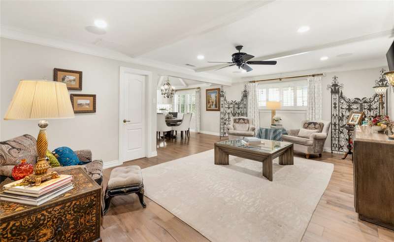 Effortlessly elegant and timeless Its not often a property of this caliber comes to market. Situated in the coveted Alexanders Village neighborhood and within the highly sought-after Merriman Park Elementary attendance zone, this one-owner, one-story home has been exquisitely reimagined by a professional interior design firm. Originally built in 1979, the residence underwent a comprehensive renovation, blending classic architecture with refined, modern updates. Inside, no detail has been overlooked new windows, plantation shutters, thoughtful craftsmanship, designer touches, and luxurious finishes throughout. The flexible floor plan offers three distinct living areas and two dining spaces, ideal for both entertaining and everyday living. The kitchen opens to the breakfast and family room, and is equipped with high-end stainless steel appliances, a spacious island, and quartz countertops that complement the homes warm, inviting character. The primary suite is a true retreat, showcasing custom closets and a spa-inspired bath adorned with laser-cut marble, custom cabinetry, and exquisite details that elevate the space with a sense of understated luxury.Outside, mature trees and beautifully maintained surroundings frame this exceptional property, while the location offers quick access to NorthPark Mall, Downtown Dallas, White Rock Lake, and more. Don't miss this rare opportunity to own a beautifully curated home in one of Dallas most desirable neighborhoods.