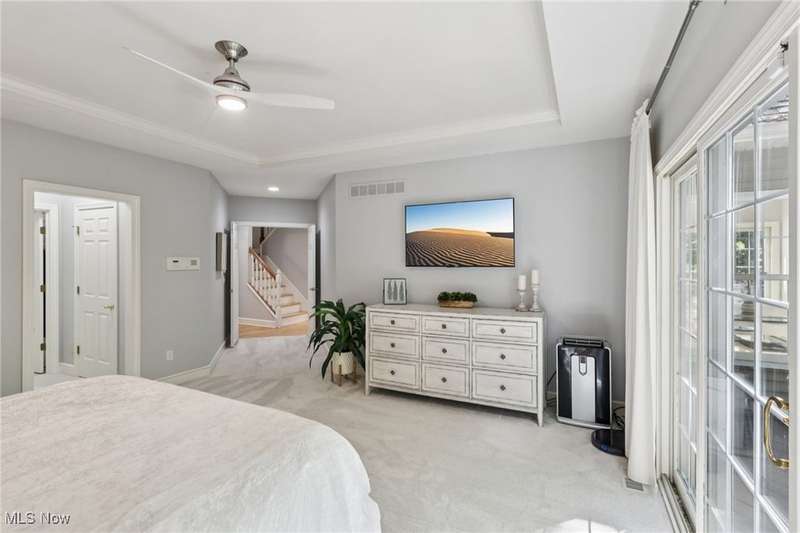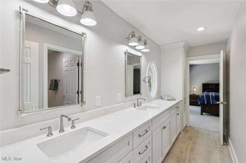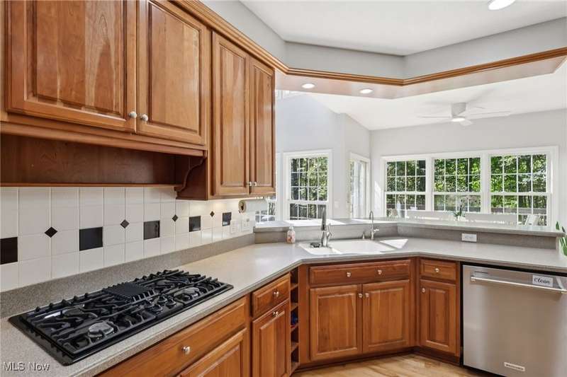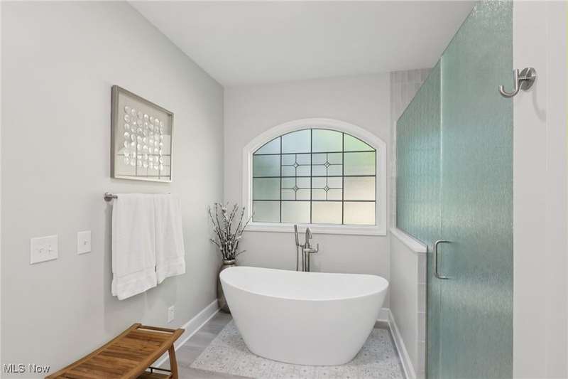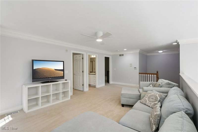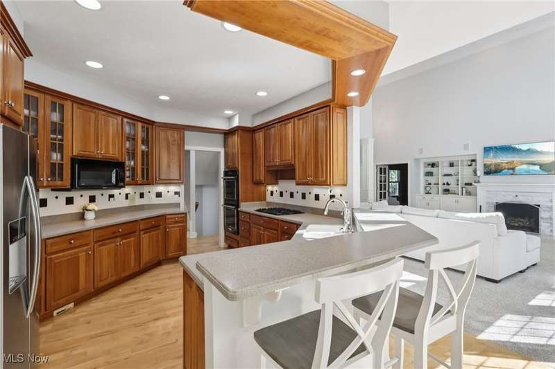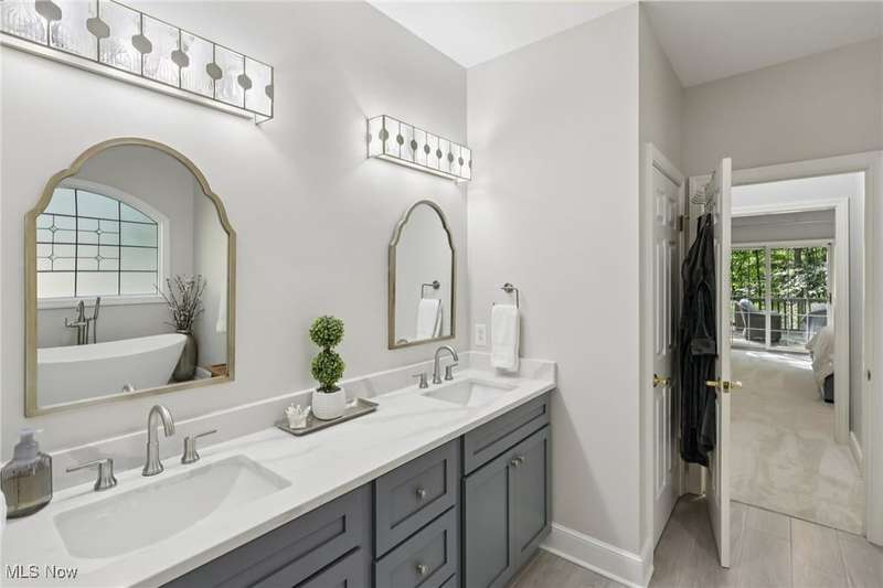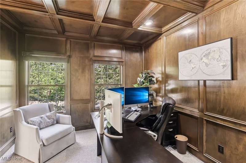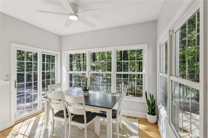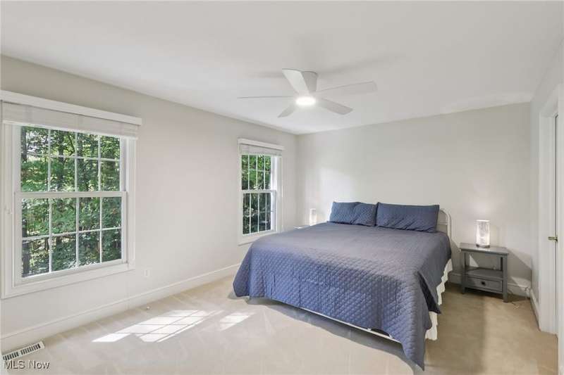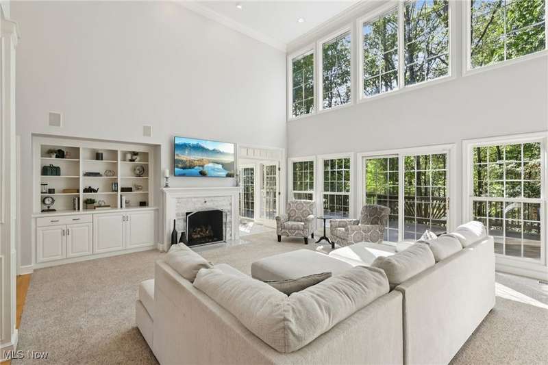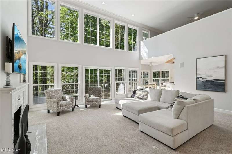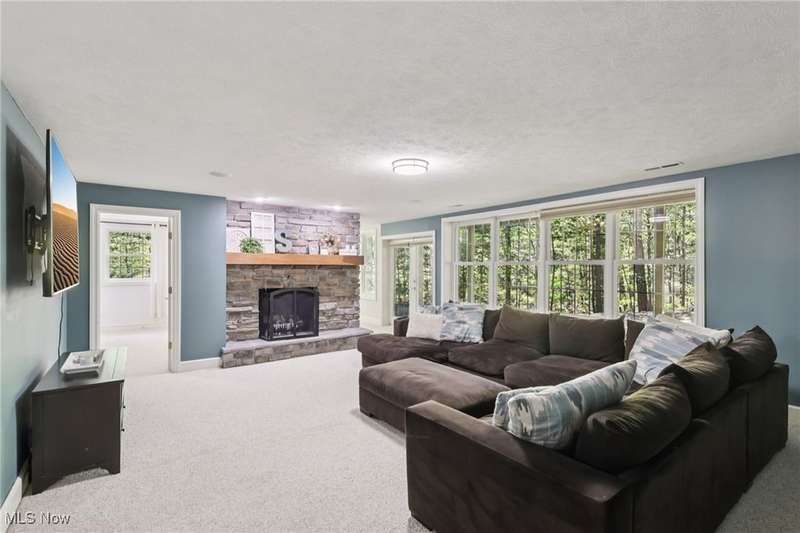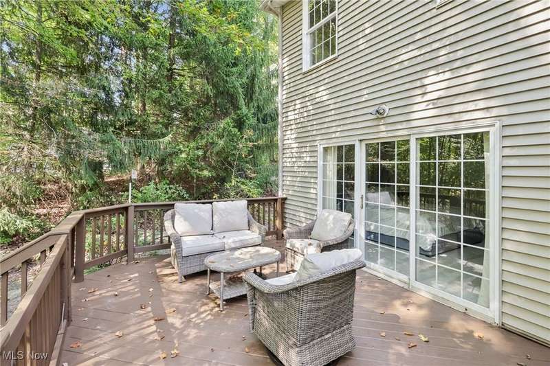 This house has everything...First floor primary suite with new glamour bath. FIVE spacious bedrooms. FOUR full baths. Multiple potential home office spaces. Finished walkout lower level. Three-car garage. Gorgeous wooded views. Sought-after Kenston School district. Located in the picturesque Hawksmoor development in the western corner of Bainbridge Township--very close to Solon and Chagrin Falls Village--this special home is nestled on a cul de sac among million-dollar homes. The first floor boasts a truly "great" great room with 2-story wall of windows with fireplace and built-ins with an open concept dining room. The kitchen has a breakfast bar and sunny 2-story breakfast room. The primary suite is a "wow" with its double-door entry, brand new carpeting, slider to deck, two walk-in closets and a stunning renovated bath with quartz countertops on the dual vanity, a stand- alone tub, oversized tile shower and private commode room. There's also a handsome dedicated office, gorgeous sunroom (that could be a 2nd office or playroom), renovated powder room and laundry room w? handy walk-in closet. Upstairs you'll find two bedrooms sharing a fantastic updated bathroom w/ massive dual vanity and separate room with large tile shower. There's also another bedroom, full bath & spacious loft on this floor. The finished walkout lower level offers even more space with its awesome living room with fireplace, bonus room (would make a great office, gym or playroom), 5th bedroom and another full bath--a wonderful guest suite or in-law suite if needed. You'll love spending time outdoors on the expansive deck with incredible views but there's also grassy side and back yards. Improvements in last 2 years include: new HVAC, 3 bathroom remodels, hardwood flooring in dining room, primary bedroom carpeting, repainted deck, repaved driveway. Other things to love about this home? So many flexible living spaces and storage galore! Don't miss this great home and value!
