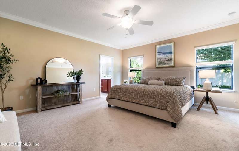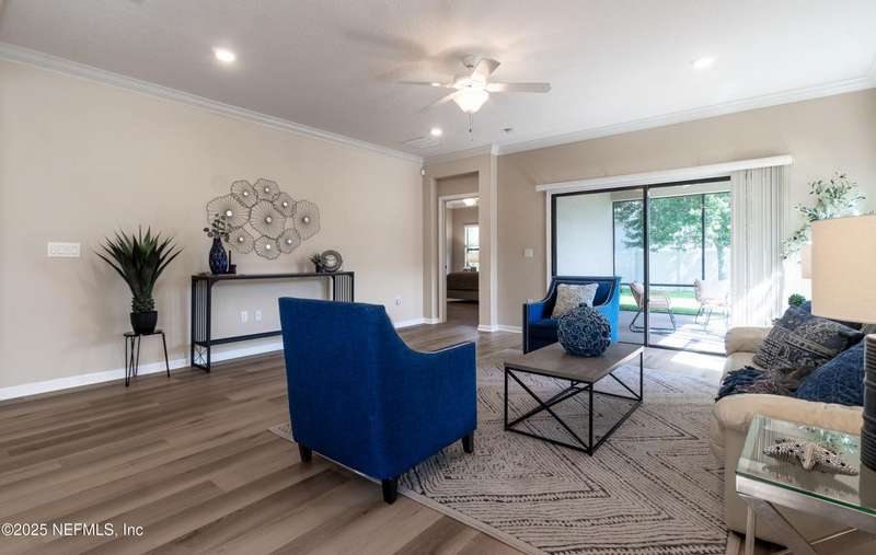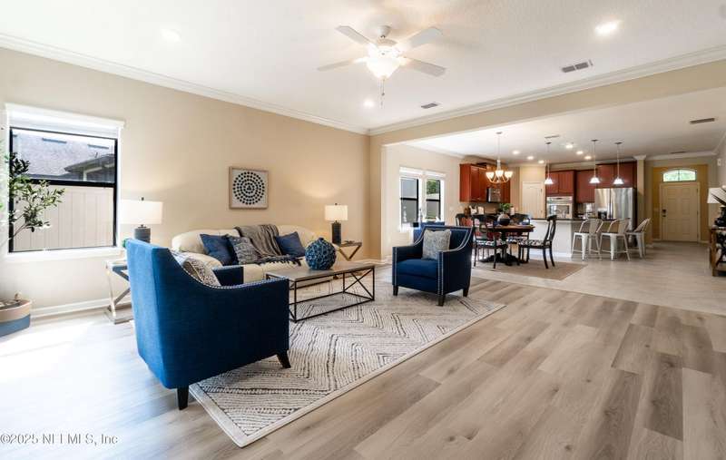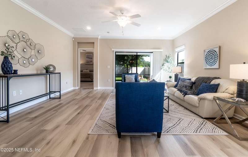 BUYER FAILED TO PERFORM, SELLER IS READY TO CLOSE! Welcome to this beautifully maintained, one-owner home offering a flexible floor plan and resort-style community amenities. The flex space with French doors-perfect for a home office or playroom. The gourmet kitchen includes a gas cooktop, double ovens and large granite island. All kitchen appliances, in addition to the washer, dryer, and water softener stay. Enjoy gatherings in the spacious family room with brand new LVP flooring and plenty of natural light. The private primary suite offers views of the fully fenced backyard. Primary bath features dual sinks, a garden tub and walk-in shower. Step outside to a screened lanai and fully fenced backyard-ideal for pets or play. Located in a golf cart friendly community just minutes from the beach. The community offers several pools, water slides, childrens splash pads, fitness centers, tennis/pickleball courts, playgrounds, and dog parks. Nocatee offers something for everyone.