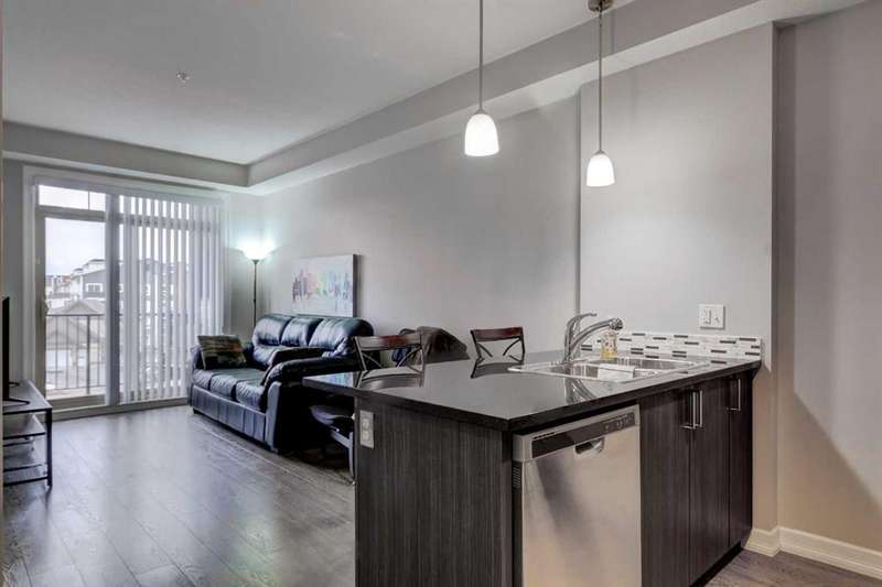 Welcome to this bright and stylish 1 bed, 1 bath condo perfectly situated in the sought-after community of Copperfield. This thoughtfully designed unit features a modern kitchen complete with stainless steel appliances, granite countertops, and ample cabinet space — ideal for everyday living and entertaining. Enjoy the convenience of in-suite laundry and a private balcony offering peaceful pond and mountain views, the perfect spot to relax after a long day. The unit is located just steps away from the elevator for easy access and comes with an assigned parking stall and separate storage locker for your extra belongings. With nearby parks, walking paths, shopping, and easy access to major routes, this condo combines comfort, convenience, and an unbeatable location. Perfect for first-time buyers, downsizers, or investors — don’t miss out on this move-in-ready home in Copperfield!