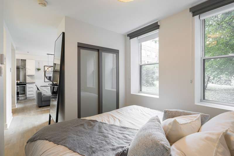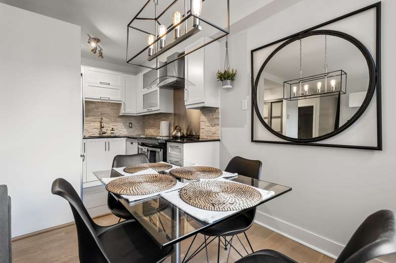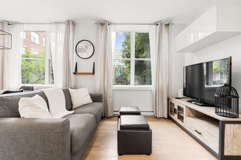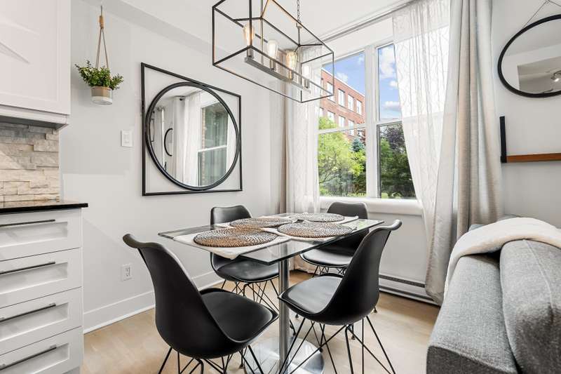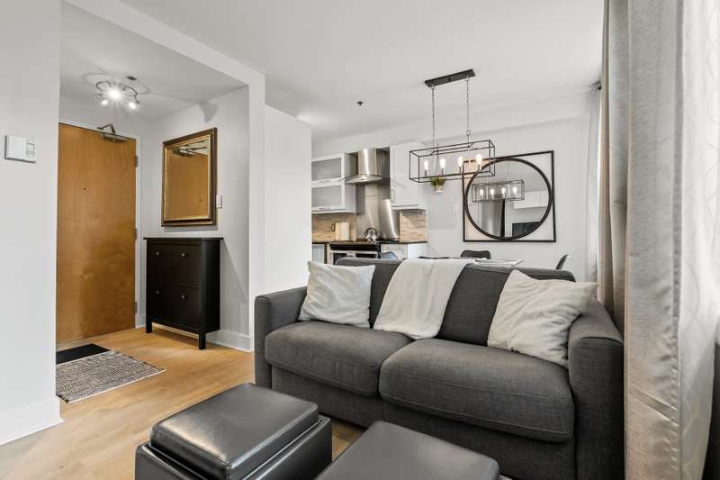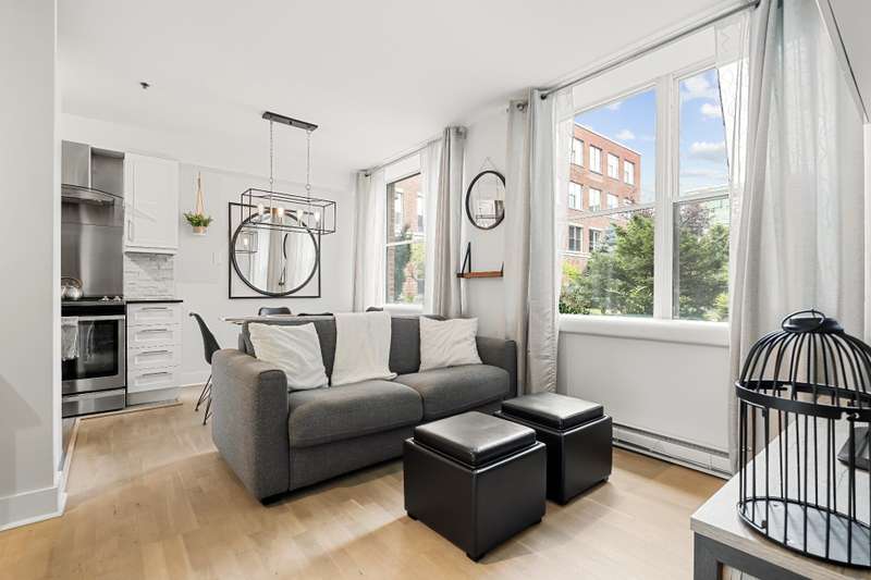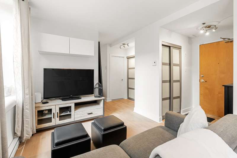 Renovated one bedroom, one bathroom condo including all appliances for immediate occupancy in Lachine! Entering the condo there is an entrance with a coat closet.The living and dining room has sizeable windows facing the courtyard, and the modern kitchen has ample cabinet space. The bedroom has a king-size bed with overhead storage and closet.The bathroom has a tub and shower, adjacent to the bathroom is a closet.This unit includes one outdoor parking spot, and an outdoor inground pool.Close to highways 20 and 13!