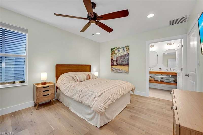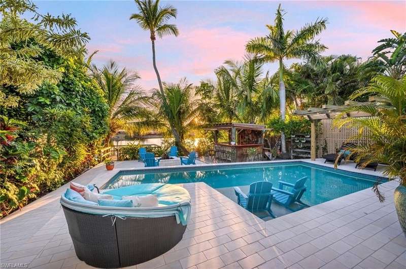Completely rebuilt from the ground up in 2012 and then updated in 2025- Best location and view in Naples! "Old Florida in the Heart of Naples"- Amazing LAKE PARK setting- the hottest neighborhood in Naples! Less than 1 mile to the beach- 1.5 miles to 5th Avenue- West facing Sunsets every night over the lake in your backyard- Ultimate privacy in the middle of town- This home is unlike anything on the market! NO FLOOD insurance needed- LOMA done with FEMA- 11.2ft. above flood plane- NOT affected by any hurricane, the only thing original is the concrete block and yellow pine studs. Thoughtfully remodeled & brought up to today's luxury living ideals- Amazing tropical lush landscaping- Dock on the lake- Old Florida Keys Tiki Bar- Pool with sun shelf- Pergola- Grilling patio- Outdoor shower- Handicap accessible- Enphase Solar power- Huge garage with room for all your toys- Tons of storage- 4 bedrooms on main floor, 3 with ensuite baths- 5th bedroom is a 600 sq. ft. loft/flex space upstairs with 1/2 bath (plumbed for shower option), currently a workout studio with sauna- Wonderful light- Dog run- This property has the tropical Caribbean feel you 've been missing in Florida. Enjoy coffee on the dock while watching the wildlife on the lake, pick fruit from your own mango, avocado, coconut, pineapple, banana, agave, & aloe plants, walk/bike to the beach and 5th Ave S, enjoy the world class shopping and dining of the Design District & Downtown Naples- for outdoor enjoyment walk over to Fleischman Park for pickleball or bike the Greenway to award winning Baker Park- Every possibility just a step from your new front door. Plumbing, electrical, & HVAC all updated throughout- Brought up to hurricane code- roofing trusses strapped- PGT Hurricane windows & doors- Metal roof by Kelly Roofing- New Navien tankless water heater- New Lennox AC system- 120 gallon propane tank