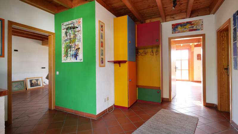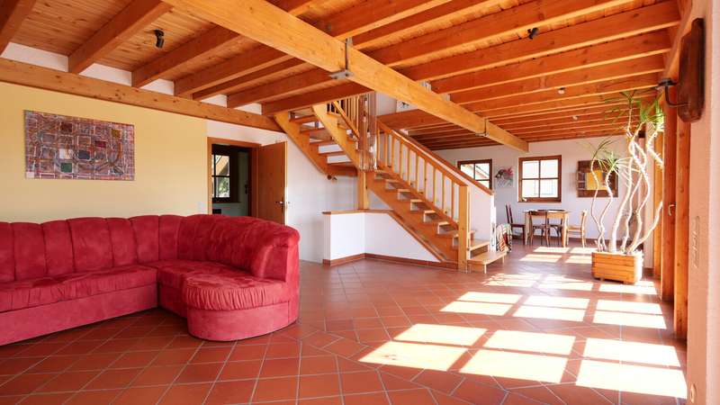Welcome to your new home! This charming country house combines a cozy living ambience, individual architecture and a wonderfully peaceful location. You can feel the special character of this property as soon as you enter: open rooms, lots of light and a successful combination of natural materials and loving details. The floor plan is anything but ordinary and offers plenty of room for creativity and individual living ideas. Spacious living areas flow harmoniously into one another, while light-colored wooden elements, exposed beams and high-quality natural materials give the house a warm and cozy atmosphere. The open-plan design ensures a bright and friendly living experience, while cozy retreats are perfectly integrated into the room concept. The granny apartment also opens up interesting possibilities for use - whether as a guest area, for adult children or as a home office. The property is leasehold, allowing you to purchase this special property at attractive conditions.