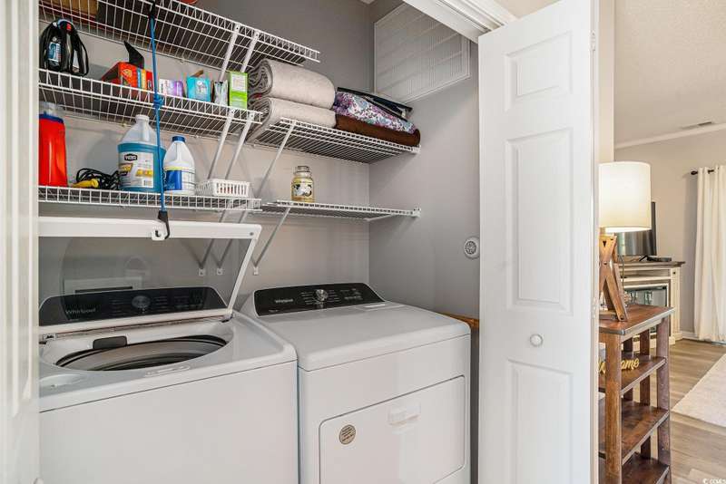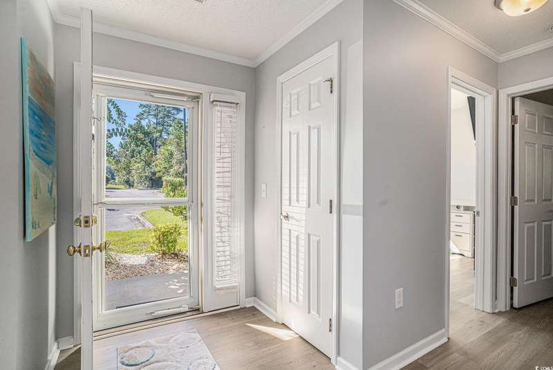 3BR/2BA First-Floor End Unit – Modern & Fully Furnished Surrounded by trees yet minutes from the beach, this first-floor end unit blends comfort, style, and privacy. The open layout features granite countertops, an extended backsplash in the kitchen, crown molding, and continual LVP flooring throughout. Offered fully furnished with modern pieces, plus a new mattress in the primary suite for move-in ease. The primary bedroom includes two closets and an en-suite bath with double sinks. A cozy fireplace makes it ideal for snowbirds, and the screened-in porch with extra storage overlooks a beautiful forest for a serene retreat. Perfect as a second home or investment, all in a private community, minutes to Cherry Grove Beach and close to shopping, dining, and world-class golf courses.