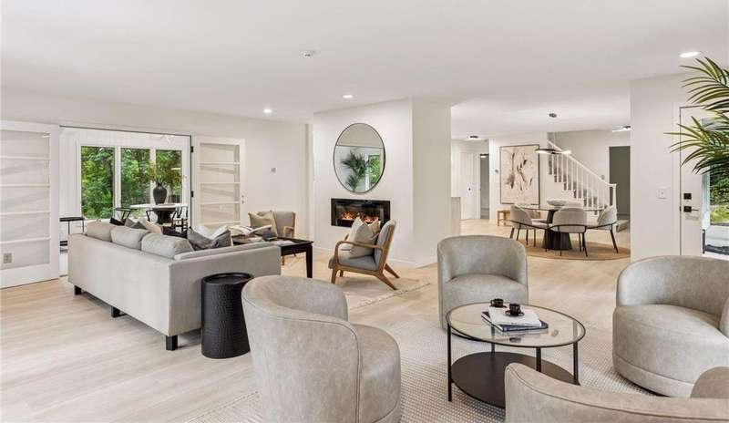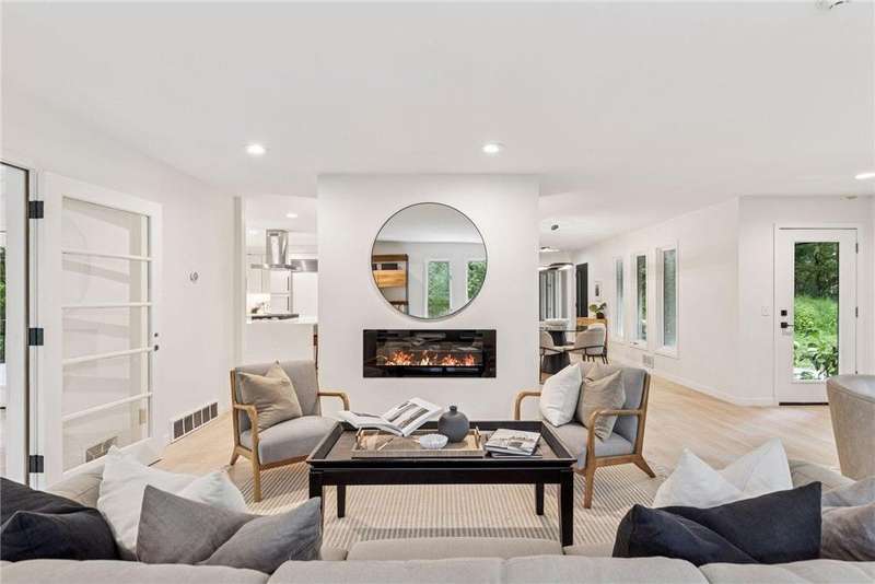 Price Reduced! This home has been fully transformed through a top-to-bottom renovation, blending modern luxury with smart function. The seller removed walls to create an open-concept main level, anchored by a beautifully redesigned kitchen w/ custom cabinetry, under-cabinet lighting, quartz counters, high-end appliances & a dramatic waterfall island. A brand-new main-floor half bath adds convenience, while upstairs, the Owner’s Suite was expanded & reimagined to include a spa-like bath w/ stand-alone tub, walk-in shower, double sinks & porcelain tile floors, plus a walk-in closet & new laundry. Updates throughout include NEW: LVP flooring, carpeting, lighting, electric fireplace, washer/dryer, septic system, electrical panel, EV charger, deck, interior & exterior paint, 11 windows & smart-home features. A bright sunroom, main-floor office & 4th bedrm, plus a flexible lower level w/ ¾ bath complete the home. This move-in ready home lives like new construction in a mature, scenic setting.