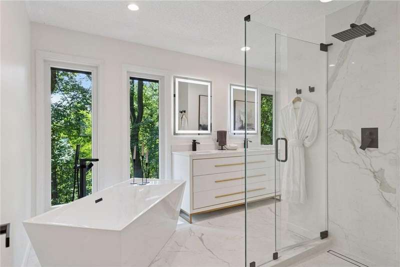 Ready to sell with a $99,000 price reduction! Thoughtfully redesigned from top to bottom, this home blends modern luxury with functional design in a serene, nature-filled setting. Walls were removed to create an open-concept main level, filled with natural light and designed for effortless living. The stunning new Kitchen anchors the home with custom cabinetry, quartz countertops, under-cabinet lighting, high-end appliances & a dramatic waterfall island ideal for gathering and entertaining. A bright Sun Room and main floor Office add flexibility, while a new 1/2 Bath enhances everyday convenience. Upstairs, the expanded Owner’s Suite offers a spa-inspired retreat with a stand-alone soaking tub, walk-in shower, dual sinks, porcelain tile, and a spacious walk-in closet. The new upper level Laundry adds ease to daily living. Updates include NEW: LVP flooring, carpeting, lighting, electric fireplace, washer/dryer, septic system, electrical panel, EV charger, deck, 11 windows, interior & exterior paint, and smart-home features. New roof in 2019. The lower level features a versatile Family Room, ideal for home theater, entertainment, or a great play area with a 3/4 Bath & a walkout door to the backyard. Surrounded by mature trees for privacy, the property includes grassy areas front and back with a wooded backdrop that’s a nature lover’s dream. Located in the award-winning Mounds View School District, this move-in ready home offers fresh style, comfort & a peaceful setting. Seller is open & ready to make a move - don’t miss this opportunity!