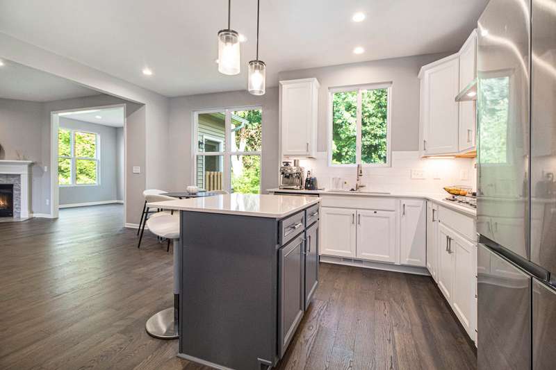 Welcome to North Sky, one of Ann Arbor's most sought-after northside neighborhoods! This nearly new contemporary colonial backs to peaceful woods with walking trails, offering both privacy and natural beauty. Step inside from the covered front porch to a striking two-story foyer filled with natural light and elegant wainscoting. The spacious living room features high ceilings, handsome wood floors, a cozy gas fireplace, and sweeping views of the trees beyond. Off the living room are the formal dining room, a bright sunroom wrapped in windows, and the beautiful kitchen. The dining and sunroom spaces are flexible to fit your family's needs - perfect for entertaining, working from home, play space, or relaxing with a book. The chef's kitchen boasts sleek white cabinetry, quartz counters, stainless steel appliances, and a central island with breakfast bar seating. Enjoy your morning coffee or gourmet dinner while watching wildlife out back. The kitchen connects to the mud/laundry room and attached 2-car garage for everyday convenience, and a powder room completes the main level. Upstairs, a loft-style family room offers space to gather surrounded by four generous bedrooms. The massive primary suite includes a tray ceiling, wall of windows, spa-like bath with dual vanity, soaking tub, separate shower, and an oversized walk-in closet. Three additional bedrooms share a hall bath with dual vanity. The walkout basement, with daylight windows and plumbing for a full bath, is ready for your finishing touches. Outside, low-maintenance landscaping with perennials and a sprinkler system make upkeep easy, and the home is ready for your dream deck overlooking the woods. North Sky residents enjoy a neighborhood park and quick access to The Ride bus lines 22 & 63, downtown Ann Arbor, the University of Michigan, and expressways for commuting. This flexible, like-new home combines thoughtful upgrades with room to grow, and it's now ready for its next chapter! Home Energy Score of 5. Download report at osi.a2gov.org/herd.